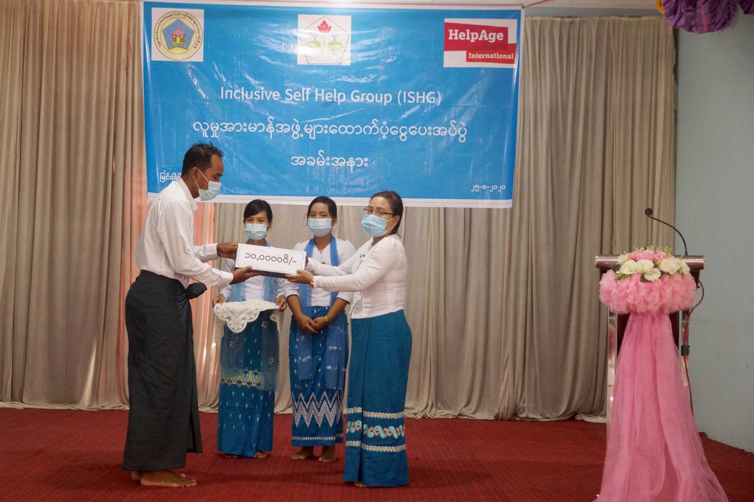 မန္တလေးတိုင်းဒေသကြီး၊ မြင်းခြံမြို့ ရွှေပြည်စိုးသာသနာ့ဗိမ္မာန်တွင်Inclusive Self – Help Group (ISHG) လူမှုအားမာန်အဖွဲ့များသို့ ထောက်ပံ့ငွေပေးအပ်ခြင်းကို ယမန်နေ့ နေ့လယ် ၁ နာရီအချိန်က ကျင်းပပြုလုပ်ခဲ့ကြောင်း သိရသည်။