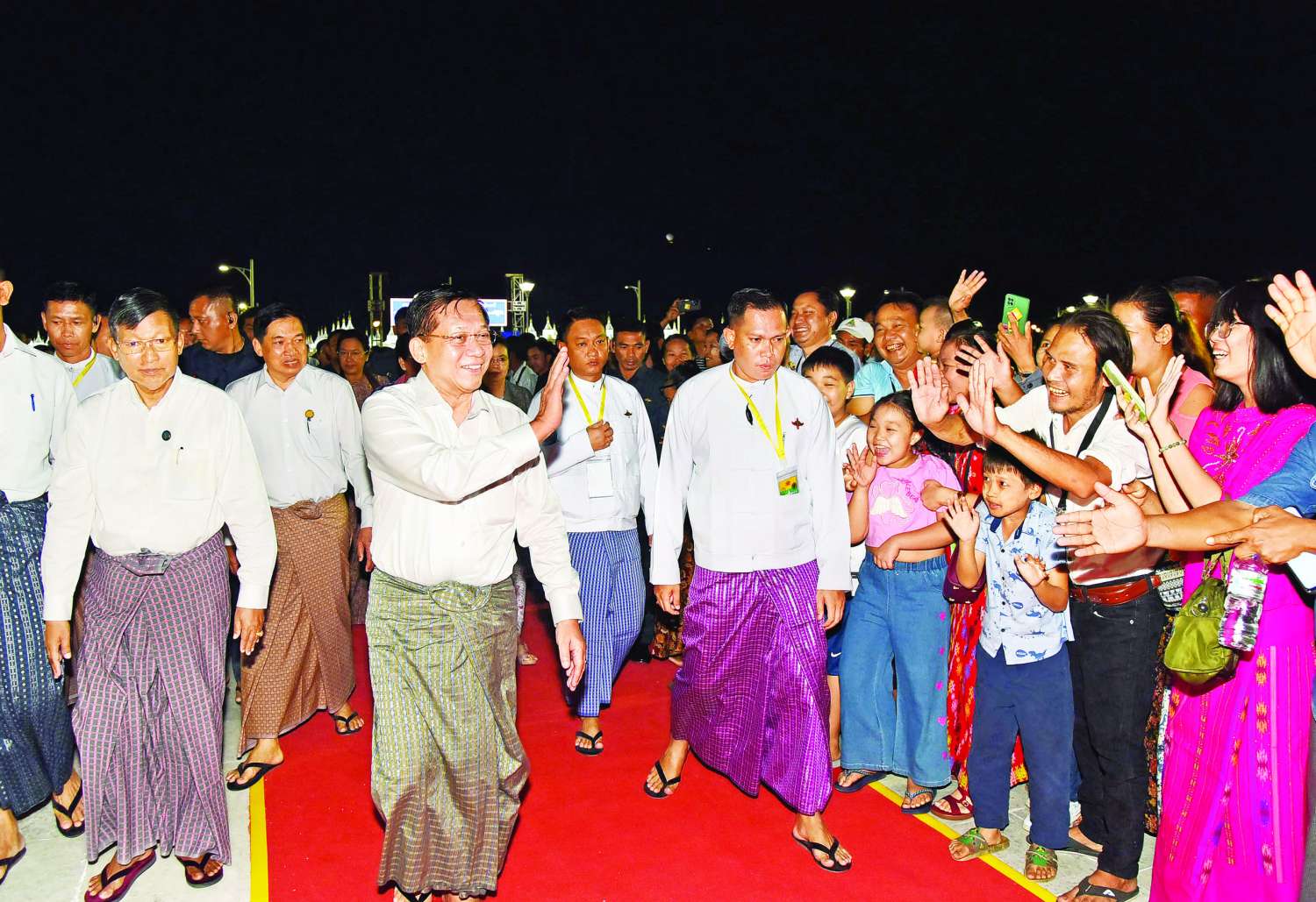 ယင်းနောက် နိုင်ငံတော်စီမံအုပ်ချုပ်ရေးကောင်စီဥက္ကဋ္ဌ နိုင်ငံတော်ဝန်ကြီးချုပ်နှင့် ဇနီးတို့သည် မာရဝိဇယဗုဒ္ဓရုပ်ပွားတော်မြတ်ကြီးအား ဖူးမြော်ကြည်ညိုပြီး ပန်း၊ ရေချမ်းနှင့် ဆီမီးများကပ်လှူပူဇော်ကာ ရင်ပြင်တော်ကြီးပေါ်၌ လှည့်လည်ဖူးမြော်ကြည်ညို၍ တက်ရောက်လာကြသူများနှင့်အတူ ဆီမီး ၉၀၀၀ ကို အတူတကွထွန်းညှိပူဇော်ပြီး မာရဝိဇယဗုဒ္ဓရုပ်ပွားတော်မြတ်ကြီး တန်ဆောင်တိုင်ပွဲတော်သို့ လာရောက်ကြသူများနှင့် ဘုရားဖူးလာရဟန်းရှင်လူပြည်သူများအား ခင်မင်ရင်းနှီးစွာဖြင့်နှုတ်ဆက်ကြသည်။