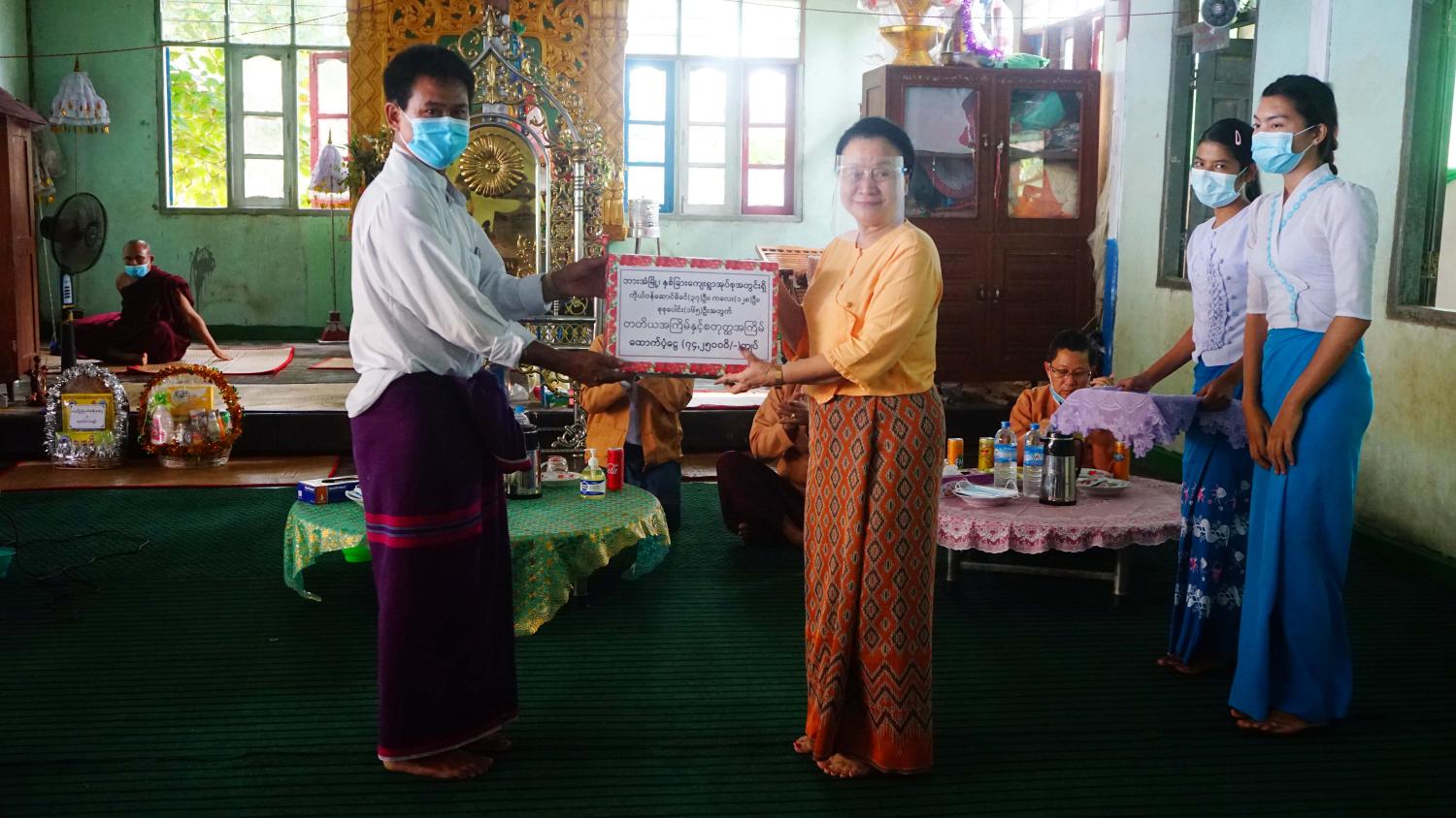 ရှေ့ဦးစွာ ပြည်နယ်ဝန်ကြီးချုပ်နှင့်အဖွဲ့သည် နှစ်ခြားကျေးရွာဘုန်းတော်ကြီးကျောင်း ဓမ္မာရုံ၌ နှစ်ခြားကျေးရွာအုပ်စုရှိ ကိုယ်ဝန် ဆောင်မိခင် (၃၇) ဦး၊ အသက် (၂) နှစ်အောက် ကလေးငယ် (၁၂၈) ဦး၊ စုစုပေါင်း (၁၆၅) ဦးအတွက် တတိယအကြိမ်နှင့် စတုတ္ထအကြိမ် ထောက်ပံ့ငွေကျပ် (၇၄၂၅၀၀၀) (ခုနှစ်ဆယ့်လေးသိန်းနှစ်သောင်းငါးထောင်ကျပ်)ကို နှစ်ခြားကျေးရွာအုပ်စု အုပ်ချုပ်ရေးမှူးထံပေးအပ်ခဲ့ပြီး အစိုးရအဖွဲ့ဝင်ဝန်ကြီးများနှင့်အတူ တက်ရောက်လာသော ကိုယ်ဝန်ဆောင်မိခင်များနှင့် အသက် (၂) နှစ်အောက် ကလေးများအား ထောက်ပံ့ငွေများပေးအပ်ခဲ့သည်။