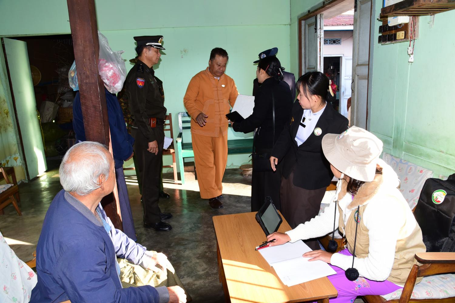 ရှမ်းပြည်နယ်(တောင်ပိုင်း)၊ တောင်ကြီးမြို့၊ နှင်းဆီလမ်း၊ ပြည်တော်သာရပ်ကွက်တွင် ယနေ့ နံနက်၈နာရီခွဲက ဒေသခံများ ဖြစ်ကြသော ဒေါ်စန်းစန်းအေး၊ ဦးစိုးအောင်၊ ဒေါ်လှမြင့်တို့ နေအိမ်၌ လူဝင်မှုကြီးကြပ်ရေးနှင့် ပြည်သူ့အင်အားဆိုင်ရာ ဦးစီးမှူးရုံးမှ ဝန်ထမ်းများက သန်းခေါင်စာရင်းကောက်ယူနေမှုကို ရှမ်းပြည်နယ် အစိုးရအဖွဲ့၊ ပြည်နယ်ဝန်ကြီးချုပ် ဒေါက်တာ လင်းထွဋ်၊ ပြည်နယ်လုံခြုံရေးနှင့် နယ်စပ်ရေးရာဝန်ကြီး ဗိုလ်မှူးကြီးလှဦး၊ ရှမ်းပြည်နယ်ရဲတပ်ဖွဲ့မှူး ရဲမှူးချုပ် သူရတင်ကိုကို၊ မြို့နယ်အုပ်ချုပ်ရေးမှူး၊ ရပ်ကွက် အုပ်ချုပ်ရေးမှူး တို့နှင့် အတူ တစ်အိမ်တက်ဆင်းလှည့်လည်ကြည့်ရှု၍ လိုအပ်သည်များ ဖြည့်စွက်မှာကြားခဲ့ကြောင်း သိရသည်။