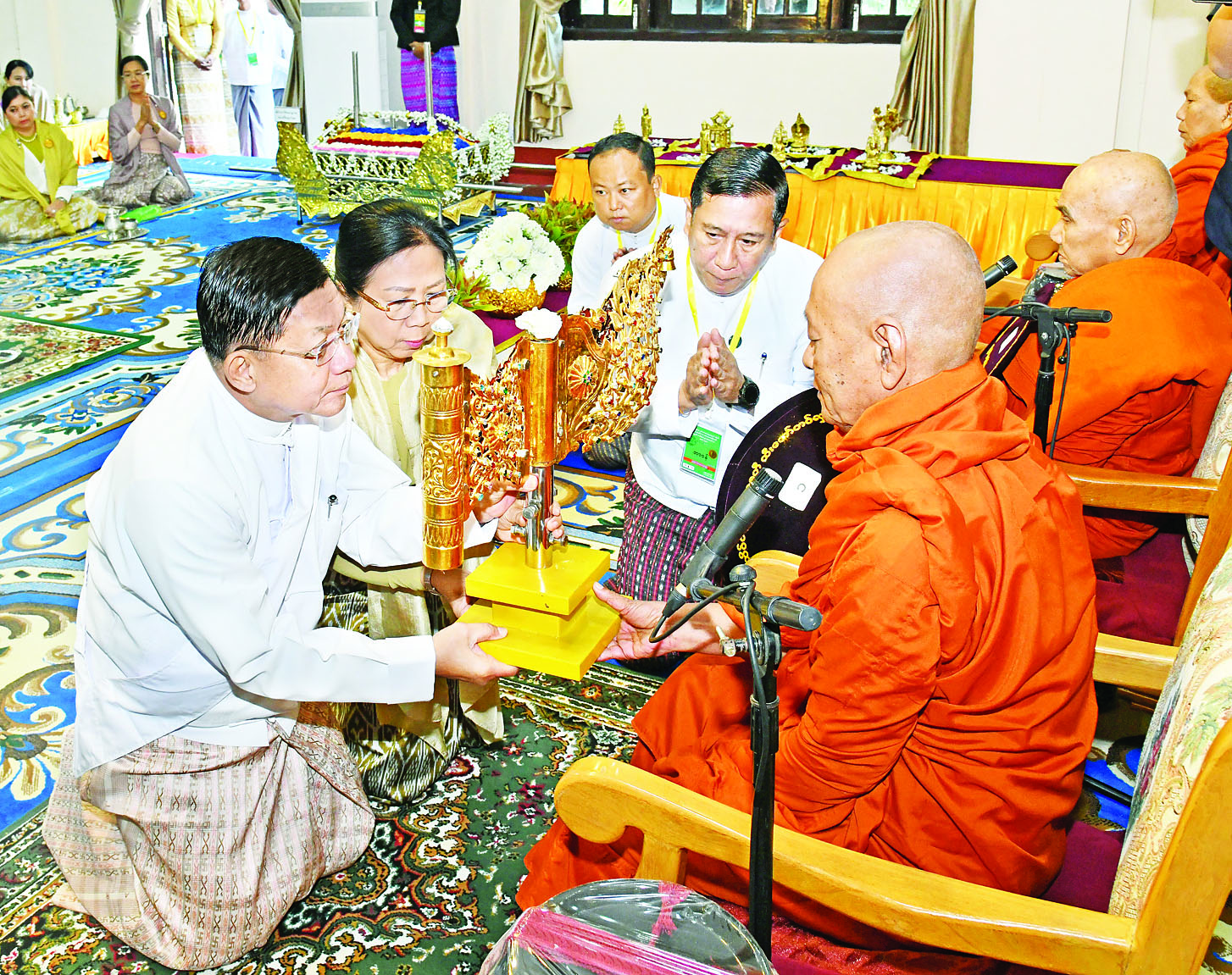 အခမ်းအနားများအပြီးတွင် နိုင်ငံတော်စီမံအုပ်ချုပ်ရေးကောင်စီဥက္ကဋ္ဌ နိုင်ငံတော်ဝန်ကြီးချုပ်နှင့် ဇနီး၊ အခမ်းအနားတက်ရောက်လာကြသူများသည် ဆရာတော်၊ သံဃာတော်များအား နေ့ဆွမ်း ဆက်ကပ်လှူဒါန်းခဲ့ကြကြောင်း သတင်းရရှိသည်။