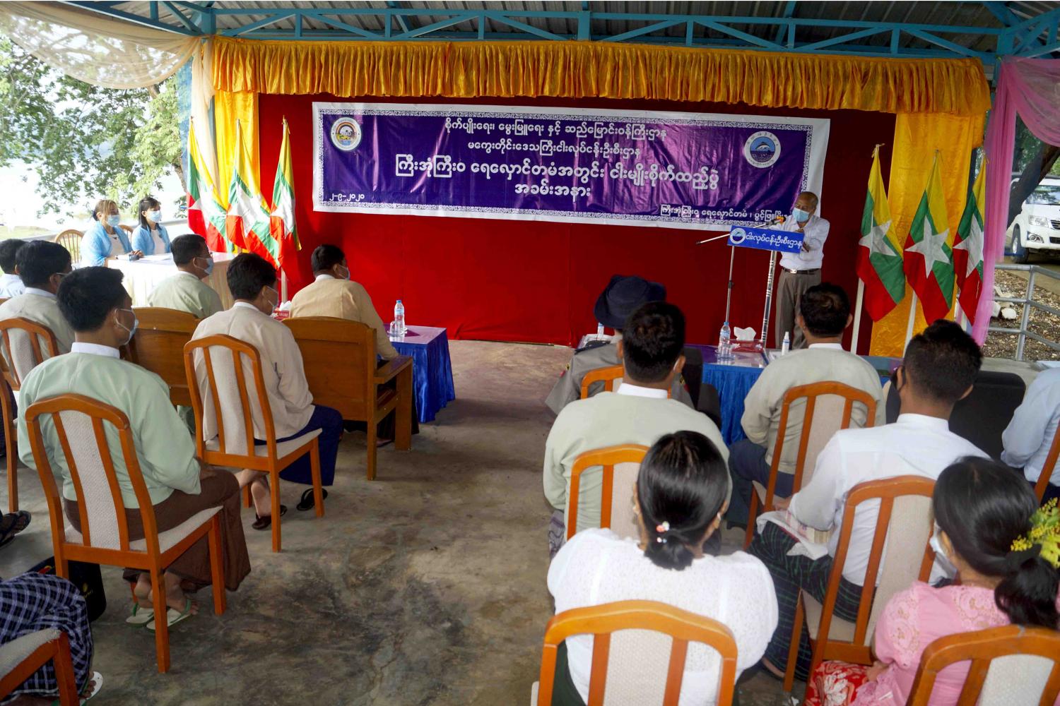 အခမ်းအနားတွင် မကွေးတိုင်းဒေသကြီးအစိုးရအဖွဲ့ ဝန်ကြီးချုပ် ဒေါက်တာအောင်မိုးညို က ငါးသယံဇာတ ဖူလုံစေရန်နှင့် ပြည်သူများ ငါးစားသုံးမှု ဖူလုံစေရန်အတွက် ရည်ရွယ်ပြီး နိုင်ငံတစ်ဝန်း နှစ်စဉ် မြစ်ချောင်း ၊ အင်းအိုင်များ ၊ ဆည်တမံများနှင့် စပါးစိုက်လယ်မြေများတွင် ငါးမျိုးစိတ်များ စိုက်ထည့်ပေးခြင်းကို အကောင်အထည်ဖော် ဆောင်ရွက်ပေး လျက်ရှိပါကြောင်း၊ ယခုလို ငါးမျိုးစိတ် စိုက်ထည့်ပေးခြင်းဖြင့် ဒေသတွင်းရှိ ပြည်သူများ ငါးရိက္ခာဖူလုံစေသလို ရေလုပ်သားများ အတွက်လည်း မိသားစုတစ်ပိုင်တစ်နိုင် ဝင်ငွေရရှိအောင် အလုပ်အကိုင်အခွင့်အလမ်းများ ဆောင်ရွက် လုပ်ကိုင်နိုင်မည် ဖြစ်ပါကြောင်း ၊ အလားတူ ရေလုပ်ငန်းလုပ်ကိုင်ကြသည့်လုပ်ငန်းရှင်များနှင့် ရေလုပ်သားများ ၊ တံငါ လုပ်ငန်းလုပ်ကိုင် ကြသူများအနေဖြင့် စည်းကမ်းမဲ့ ငါးဖမ်းဆီးရှာဖွေမှုများကို ရှောင်ကြဉ်ကြစေလိုကြောင်း ဆွေးနွေး ပြောကြားသည်။