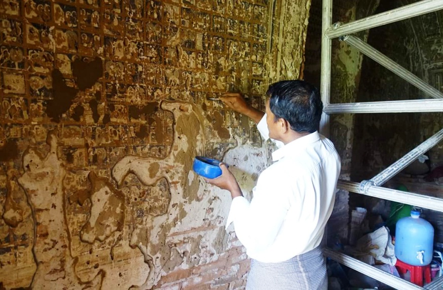 ပုဂံရှေးဟောင်းယဉ်ကျေးမှုနယ်မြေ ဘုရားအမှတ် (၁၀၈၁) ဂူဘုရားရှိ နံရံဆေးရေးပန်းချီများအား ကြံ့ခိုင်မှုထိန်းသိမ်းရေး လုပ်ငန်းများဆောင်ရွက်နေ