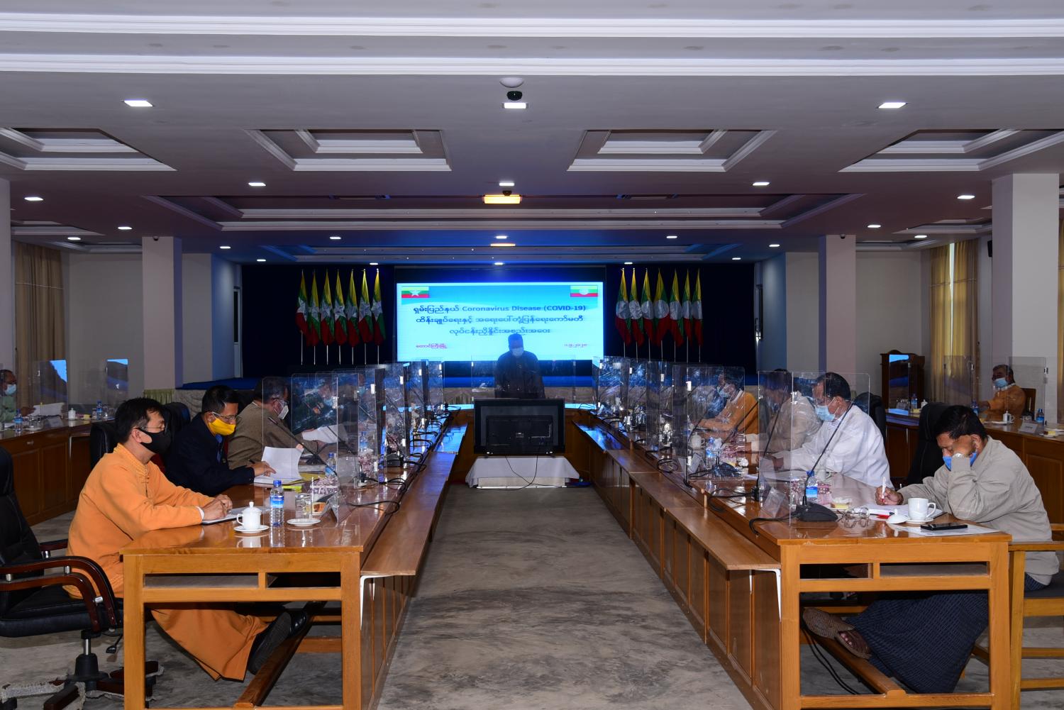ရှမ်းပြည်နယ် Corona Virus Disease 2019 (Covid-19) ထိန်းချုပ်ရေးနှင့် အရေးပေါ်တုံ့ပြန်ရေး ကော်မတီလုပ်ငန်းညှိနှိုင်း အစည်းအဝေးကို ယမန်နေ့ နံနက် (၁၀) နာရီအချိန် က တောင်ကြီးမြို့ ရှမ်းပြည်နယ် အစိုးရအဖွဲ့ရုံးအစည်းအဝေးခန်းမ၌ ကျင်းပသည်။