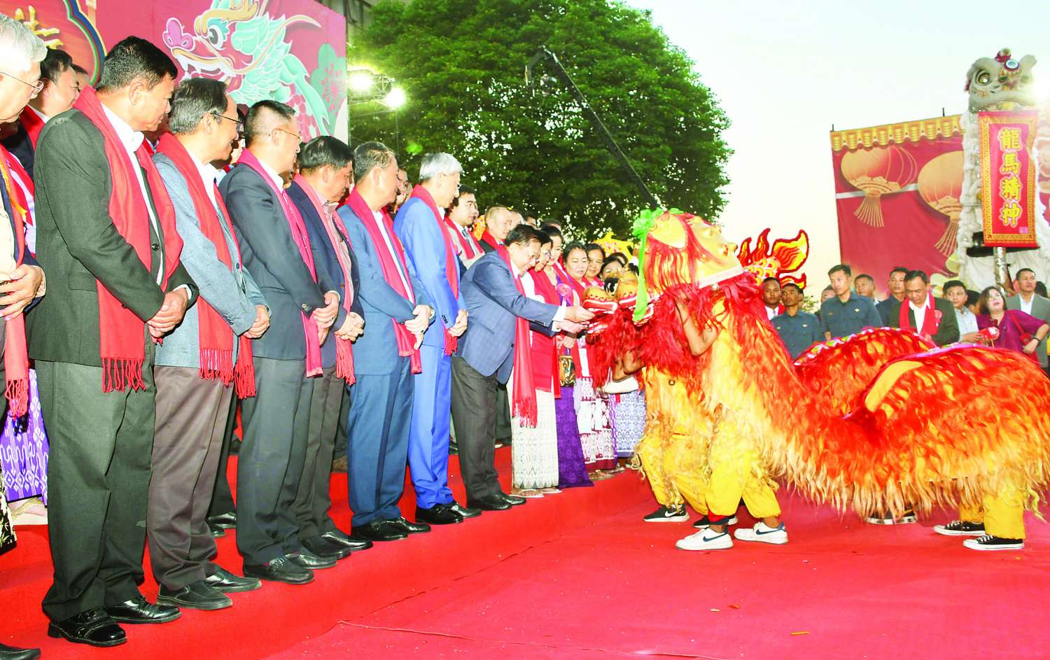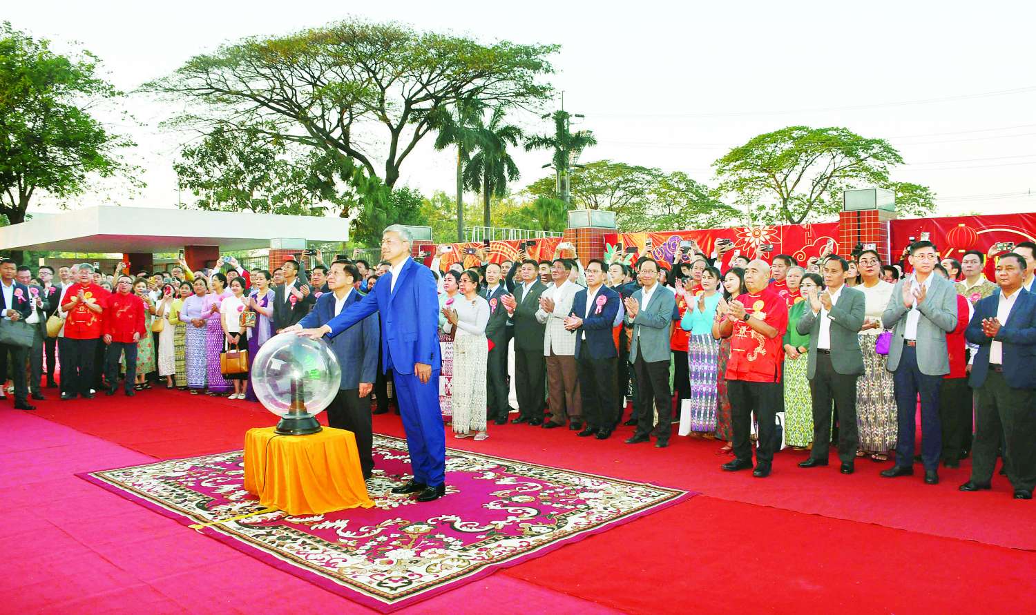 ယင်းနောက် နိုင်ငံတော်စီမံအုပ်ချုပ်ရေးကောင်စီဥက္ကဋ္ဌ နိုင်ငံတော်ဝန်ကြီးချုပ်နှင့် မြန်မာနိုင်ငံဆိုင်ရာ တရုတ်နိုင်ငံ သံအမတ်ကြီးတို့က နှစ်သစ်ကူးပွဲတော်အခမ်းအနားကို စက်ခလုတ်နှိပ် ဖွင့်လှစ်ပေးသည်။ ၎င်းနောက် နိုင်ငံတော်စီမံအုပ်ချုပ်ရေးကောင်စီဥက္ကဋ္ဌ နိုင်ငံတော်ဝန်ကြီးချုပ်နှင့် ဇနီး၊ မြန်မာနိုင်ငံဆိုင်ရာ တရုတ်နိုင်ငံ သံအမတ်ကြီးတို့အား တရုတ်ရိုးရာ နှစ်သစ်ကူးအထိမ်းအမှတ် ရွှေနဂါးရုပ်အား နတ်မင်းကြီးလေးပါးမှ ပေးအပ်ပြီး တရုတ်ရိုးရာ နှစ်သစ်ကူးအထိမ်းအမှတ် ပုဝါများဖြင့် ဂါရဝပြုသည်။