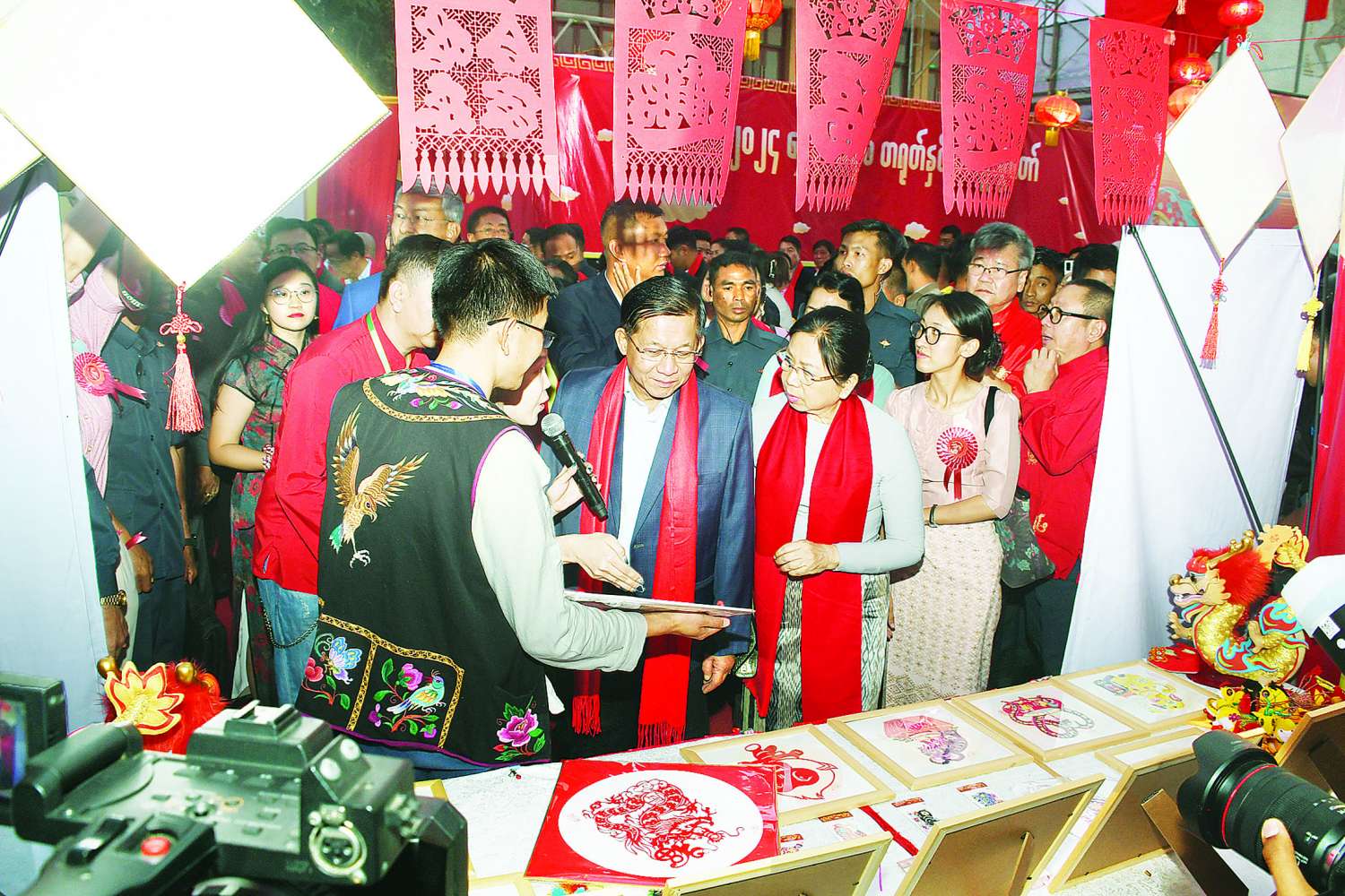 ဆက်လက်ပြီး နိုင်ငံတော်စီမံအုပ်ချုပ်ရေးကောင်စီဥက္ကဋ္ဌ နိုင်ငံတော်ဝန်ကြီးချုပ်နှင့် ဇနီး၊ တက်ရောက်လာကြသူများသည် China Town တရုတ်ရိုးရာယဉ်ကျေးမှုပြခန်းများနှင့် အစားအသောက်ပြခန်းများကို လှည့်လည်ကြည့်ရှုကြသည်။
