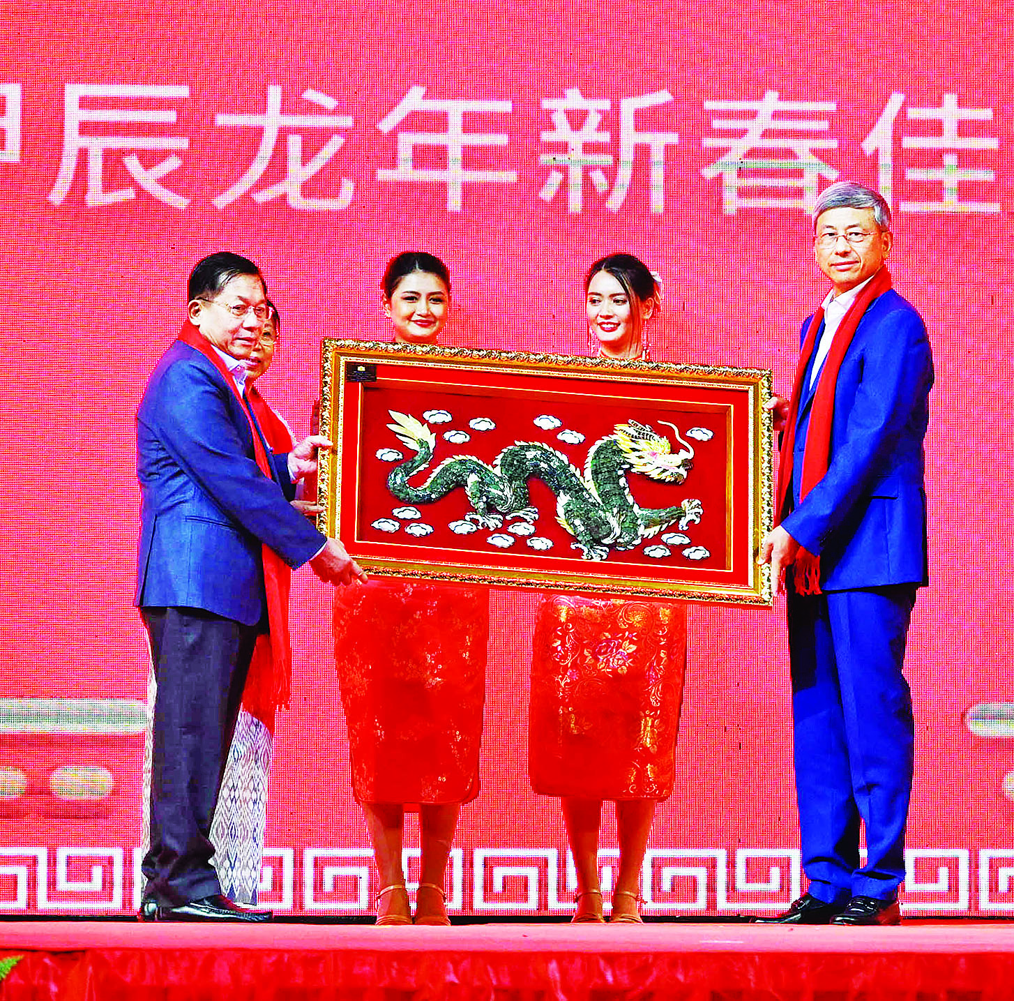 ထို့နောက် နိုင်ငံတော်စီမံအုပ်ချုပ်ရေးကောင်စီဥက္ကဋ္ဌ နိုင်ငံတော်ဝန်ကြီးချုပ်က ရွှေနဂါးတရုတ်နှစ်သစ်ကူးပွဲတော် နှစ်သစ်ဆုမွန်ကောင်းစကား ပြောကြားရာတွင် ပြီးခဲ့သည့် တရုတ်နှစ်သစ်ကူး ပွဲတော်ကို တရုတ်နိုင်ငံတွင်သာမကဘဲ ကမ္ဘာတစ်ဝန်းလုံးတွင်ပါ စည်ကားသိုက်မြိုက်စွာဖြင့် ခမ်းနားစွာ ကျင်းပနေကြသည်ကို တွေ့ရှိရပါကြောင်း၊ ၂၀၂၄ ခုနှစ်သည် တရုတ်ရိုးရာအရ နဂါးနှစ်ဖြစ်ပါကြောင်း၊ နဂါးနှစ်သည် တရုတ်လူမျိုးတို့၏ ၁၂ နှစ်တွင် တစ်ကြိမ် သာကျရောက်သည့်အတွက် ကံကောင်းခြင်း၊ ကြွယ်ဝချမ်းသာခြင်း၊ ဘုန်းကံကြီးမားခြင်း၊ ဩဇာကြီးခြင်း၊ စီးပွားလာဘ်လာဘများ တိုးပွားခြင်းတို့ကို ကိုယ်စားပြုသည့်နှစ်ဟု သတ်မှတ်ယူဆကြပြီး ကြီးကျယ်ခမ်းနားသည့်ပွဲများနှင့် အရေးကြီးသည့် ဆုံးဖြတ်ချက်များကို ယခုနဂါးနှစ်အတွင်း ကျင်းပလေ့ရှိသည်ဟု သိရှိရပါကြောင်း။