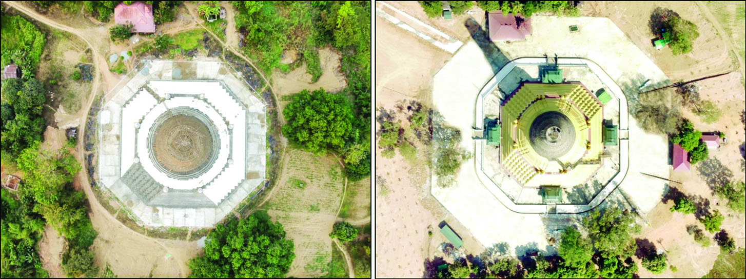 ယင်းနောက် နိုင်ငံတော်စီမံအုပ်ချုပ်ရေးကောင်စီဥက္ကဋ္ဌ နိုင်ငံတော်ဝန်ကြီးချုပ်နှင့် အဖွဲ့ဝင်များက ရတနာစိန်ဖူးတော်၊ ငှက်မြတ်နားတော်တို့ကို စေတီတော်အထွတ်၌ တင်လှူပူဇော်၍ ပရိတ်နံ့သာရည်များ ပက်ဖျန်းကြသည်။ တစ်ချိန်တည်းတွင် ကောင်စီအတွင်းရေးမှူး၊ ကောင်စီဝင်များ၊ ပြည်ထောင်စုဝန်ကြီးများ၊ ရန်ကုန်တိုင်းဒေသကြီး ဝန်ကြီးချုပ်၊ ပဲခူးတိုင်းဒေသကြီးဝန်ကြီးချုပ်၊ ကာကွယ်ရေးဦးစီးချုပ်ရုံးမှ အဆင့်မြင့်တပ်မတော်အရာရှိကြီးများ၊ ရန်ကုန်တိုင်းစစ်ဌာနချုပ်တိုင်းမှူးနှင့် ပဲခူးတိုင်းဒေသကြီးအစိုးရအဖွဲ့မှ တာဝန်ရှိသူများက အရံစေတီတော်များအား စိန်ဖူးတော်များကို တင်လှူပူဇော်ပြီး ပရိတ်နံ့သာရည်များ ပက်ဖျန်းကြသည်။
