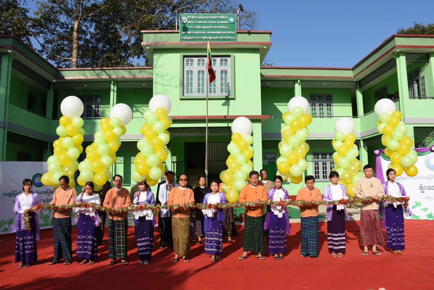 အဆိုပါ ရုံးသစ်ဖွင့်ပွဲတွင် ပြည်နယ်ဝန်ကြီးချုပ် ဒေါက်တာခက်အောင်၊ ဘဏ္ဍာအခွန်၊ စီမံကိန်းနှင့် စီးပွားရေးဝန်ကြီး ဦးဝေလင်း၊ စိုက်ပျိုး၊ မွေးမြူရေးနှင့် ဆည်မြောင်းဝန်ကြီး ဦးကျော်ကျော်ဝင်း၊ လမ်းပန်းဆက်သွယ်ရေးဝန်ကြီး ဦးဝင်းညွန့်၊ လူမှုရေးဝန်ကြီး ဦးနေဝင်းနှင့် လယ်ယာမြေ စီမံခန့်ခွဲရေးနှင့် စာရင်းအင်းဦးစီးဌာန ညွှန်ကြားရေးမှူးချုပ် ဦးသက်နိုင်ဦးတို့က ဖဲကြိုးဖြတ် ဖွင့်လှစ်ပေးကြကာ ပြည်နယ်ဝန်ကြီးချုပ်နှင့် တာဝန်ရှိသူများက ကမ္ဗည်းမော်ကွန်းအား အမွှေး နံ့သာရည်များဖြင့် ပက်ဖျန်းပေးကြပြီး ရုံးသစ်ဖွင့်ပွဲအထိမ်းအမှတ်ဖြင့် အမှတ်တရသစ်ပင်များ စိုက်ပျိုး ခဲ့ကြသည်။