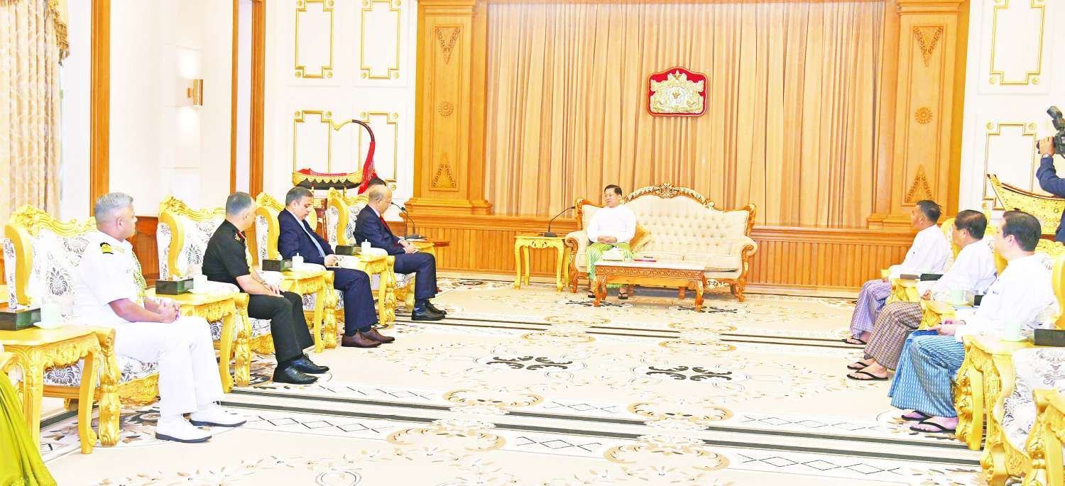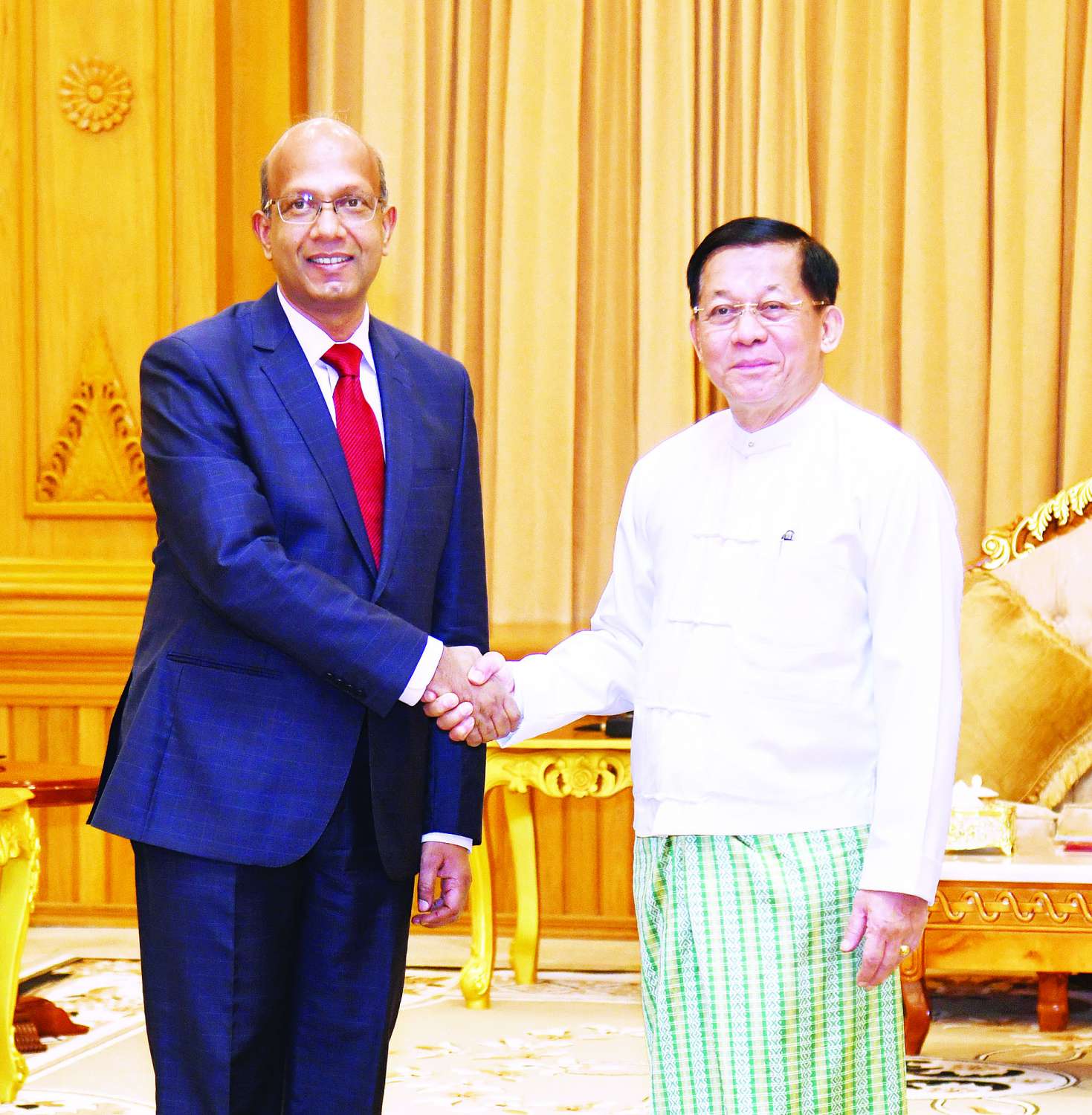 နိုင်ငံတော်စီမံအုပ်ချုပ်ရေးကောင်စီဥက္ကဋ္ဌ နိုင်ငံတော်ဝန်ကြီးချုပ် ဗိုလ်ချုပ်မှူးကြီး မင်းအောင်လှိုင် မြန်မာနိုင်ငံဆိုင်ရာ အိန္ဒိယနိုင်ငံသံအမတ်ကြီးအား လက်ခံတွေ့ဆုံ
