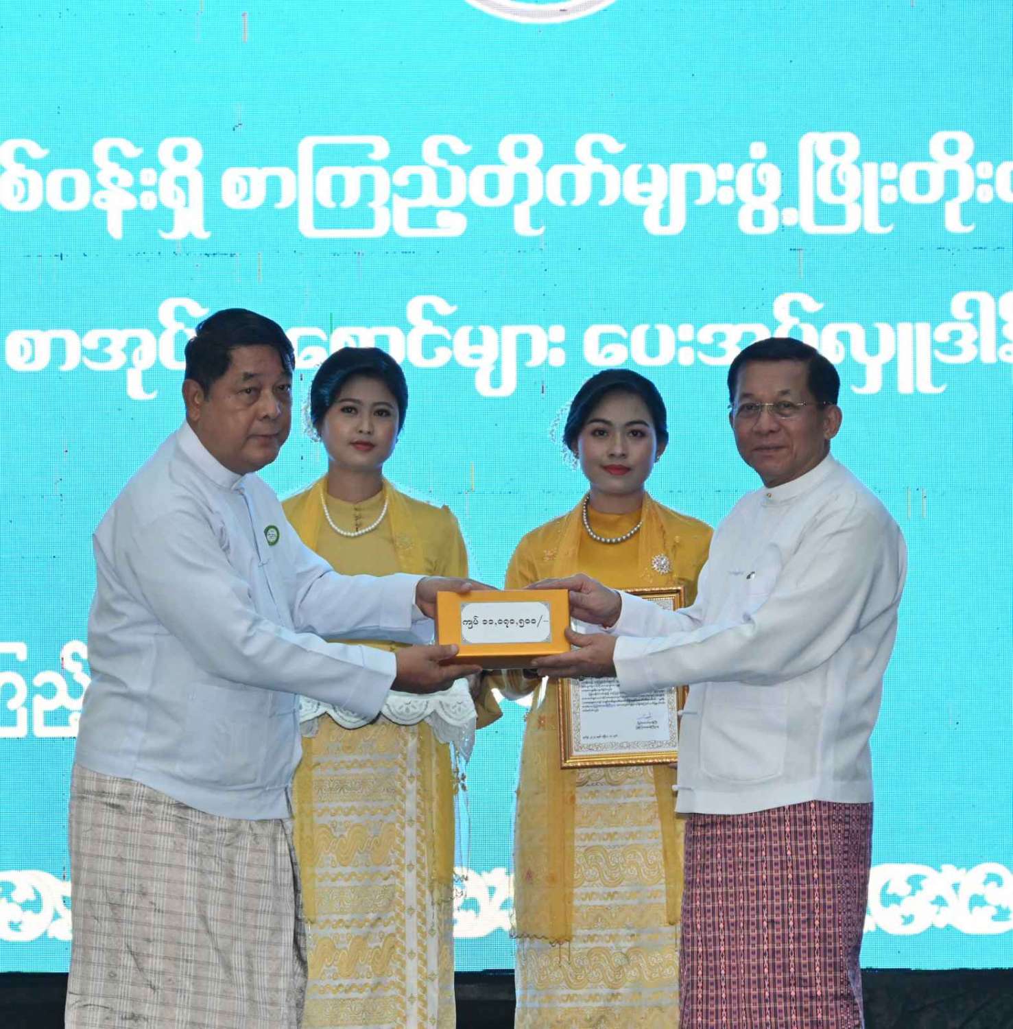 မြန်မာနိုင်ငံတစ်ဝန်းလုံးရှိ စာကြည့်တိုက်များ ဖွံ့ဖြိုးတိုးတက်ရေးအတွက် အလှူငွေနှင့် စာအုပ်စာစောင်များ ပေးအပ်လှူဒါန်းပွဲအခမ်းအနားကို ယနေ့နံနက်ပိုင်းတွင် နေပြည်တော်ရှိ အမျိုးသားစာကြည့်တိုက်၌ ကျင်းပပြုလုပ်ရာ နိုင်ငံတော်စီမံအုပ်ချုပ်ရေးကောင်စီဥက္ကဋ္ဌ နိုင်ငံတော်ဝန်ကြီးချုပ် ဗိုလ်ချုပ်မှူးကြီး မင်းအောင်လှိုင် တက်ရောက်သည်။