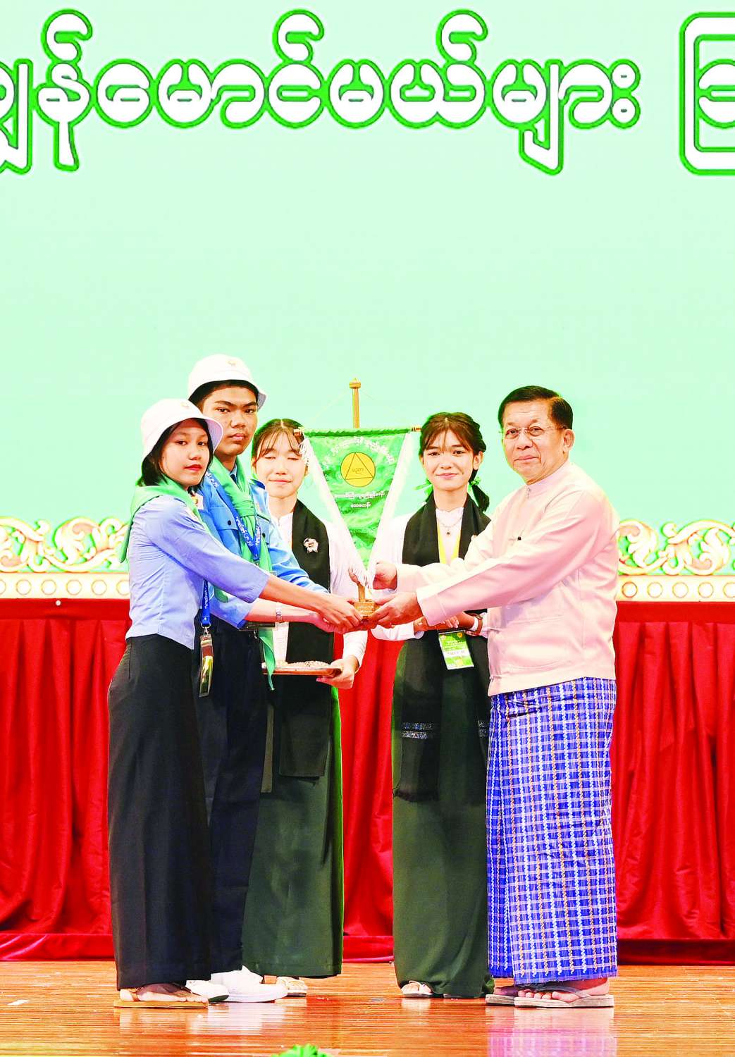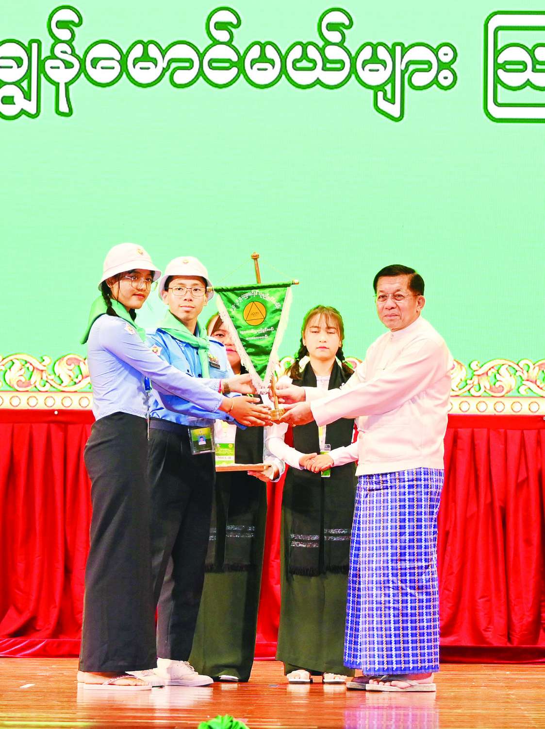 ယင်းနောက် နိုင်ငံတော်စီမံ အုပ်ချုပ်ရေးကောင်စီဥက္ကဋ္ဌ နိုင်ငံတော်ဝန်ကြီးချုပ်နှင့် အဖွဲ့ဝင်များသည် ၂၀၂၃-၂၀၂၄ ပညာသင်နှစ် လူရည်ချွန်မောင်မယ်များ၊ ကင်းထောက်လူငယ်၊ ကြက်ခြေနီလူငယ်၊ ရေကြောင်းလူငယ်၊ လေကြောင်းလူငယ်များနှင့် နေ့လယ်စာကို အတူတကွသုံးဆောင်ခဲ့ကြကြောင်း သတင်းရရှိသည်။