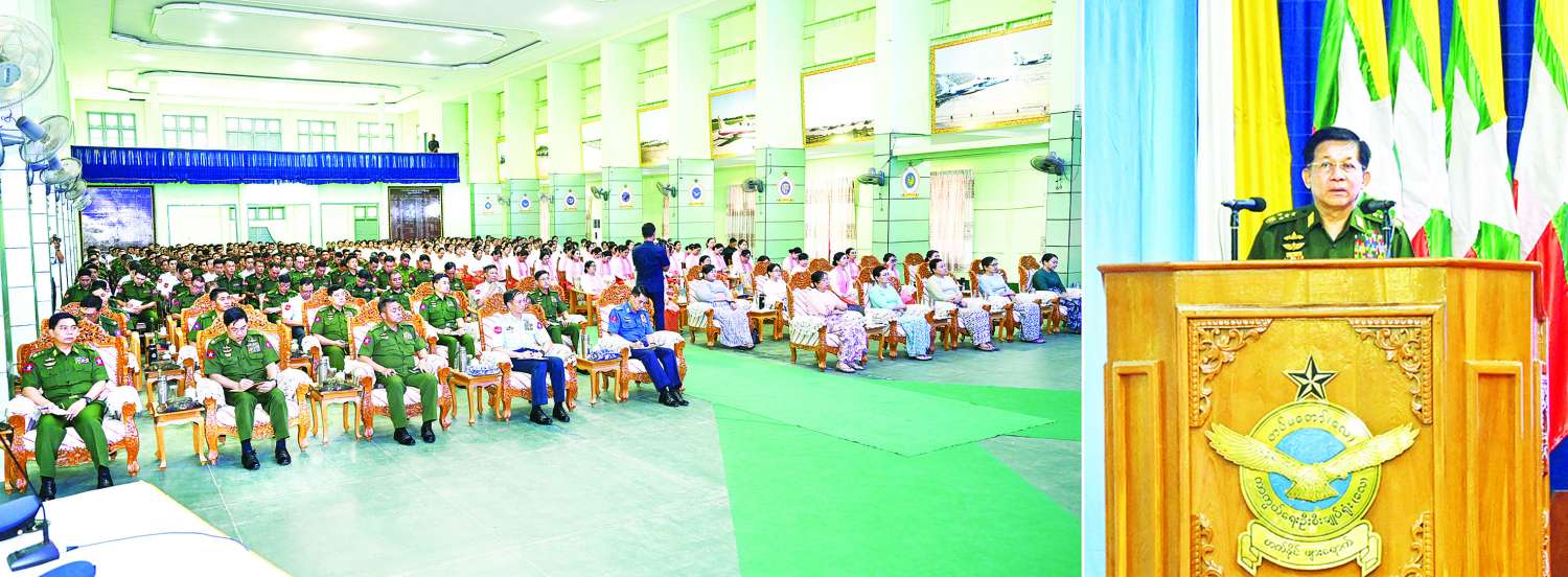 တပ်မတော်အနေဖြင့် နိုင်ငံတော်ကာကွယ်ရေးတာဝန်များကို ထမ်းဆောင်ရန် အဓိကတာဝန်ရှိပြီး ထိုသို့တာဝန်ထမ်းဆောင်နိုင်ရေးအတွက် တပ်မတော်သားတစ်ဦးချင်းစီအလိုက် ရှိသင့်ရမည့် အရည်အချင်းများနှင့် တပ်ဖွဲ့တစ်ခုချင်းစီအလိုက် အရည်အချင်းများ ရှိရမည်ဖြစ်ကြောင်း၊ တပ်မတော် (ကြည်း၊ ရေ၊ လေ) တပ်ဖွဲ့များအသီးသီး၌ တာဝန်ထမ်းဆောင်နေကြသည့် အရာရှိ၊ စစ်သည်များအနေဖြင့် ကွဲပြားခြားနားသည့် လုပ်ငန်းတာဝန်များကို ထမ်းဆောင်နေရသော်လည်း အားလုံးသည် တပ်မတော်သားများပင် ဖြစ်ကြောင်း၊ ရှေ့တန်းစစ်မြေပြင်တွင် ရှေ့တန်းကျကျ တာဝန်ထမ်းဆောင်ရသည့် ခြေလျင်၊ ခြေမြန်တပ်ဖွဲ့များတွင် တာဝန်ထမ်းဆောင်ရသည်ဖြစ်စေ၊ လက်ရုံးတပ်ဖွဲ့များတွင် တာဝန်ထမ်းဆောင်ရသည်ဖြစ်စေ နိုင်ငံတော်ကာကွယ်ရေးနှင့် လုံခြုံရေးတာဝန်များကို ထမ်းဆောင်နိုင်စွမ်းရှိရမည်ဖြစ်ကြောင်း၊ ကာကွယ်ရေးတာဝန်များကို ထမ်းဆောင်ရန်အတွက် တစ်ဦးချင်းကျန်းမာကြံ့ခိုင်မှုရှိနေရမည်ဖြစ်ပြီး အမြဲတမ်းတိုက်ပွဲဝင် အသင့်ဖြစ်စေရေးအတွက် လေ့ကျင့်နေရမည်ဖြစ်ကြောင်း၊ အသက်အရွယ်အလိုက် လုပ်သင့်လုပ်ထိုက်သည့်၊ ရှိသင့်ရှိထိုက်သည့် ကျန်းမာကြံ့ခိုင်မှုရှိစေရေး လေ့ကျင့်ခန်းများကို ဆောင်ရွက်နေရန်လိုကြောင်း၊ တပ်မတော်အတွင်းသို့ စတင်ဝင်ရောက်စဉ်ကတည်းကပင် အဆင့်အလိုက်ရှိသင့်ရှိထိုက်သည့် စစ်အတတ်ပညာရပ်များ ရရှိစေရေး သင်တန်းကျောင်းများမှ လေ့ကျင့်သင်ကြားပြီးဖြစ်သဖြင့် မိမိတို့သင်ကြား တတ်မြောက်ထားသည့် စစ်အတတ်ပညာရပ်များကို အကျိုးရှိရှိ ပြန်လည်အသုံးချနိုင်ရမည်ဖြစ်ကြောင်း၊ လေ့ကျင့်ပေးထားသည့် စစ်အတတ်ပညာများကို အသုံးချ၍ နိုင်ငံတော်၏ အချုပ်အခြာအာဏာနှင့် ပြည်သူတို့၏ အသက်အိုးအိမ်စည်းစိမ်ကို ထိပါးလာ သူများ၏အန္တရာယ်ကို ခုခံကာကွယ်နိုင်ရန်နှင့် တိုက်ခိုက်ချေမှုန်းနိုင်ရန်လိုကြောင်း၊ လေ့ကျင့်ရေး တာဝန်များကို မှန်မှန်ကန်ကန်ဖြင့် အမြဲမပြတ်ဆောင်ရွက်နေမည်ဆိုပါက လက်တွေ့စစ်မြေပြင်တွင် တာဝန်ထမ်းဆောင်ရာ၌ ရည်မှန်းချက်တာဝန်များကို အောင် မြင်စွာ ဆောင်ရွက်နိုင်မည်ဖြစ်ကြောင်း။