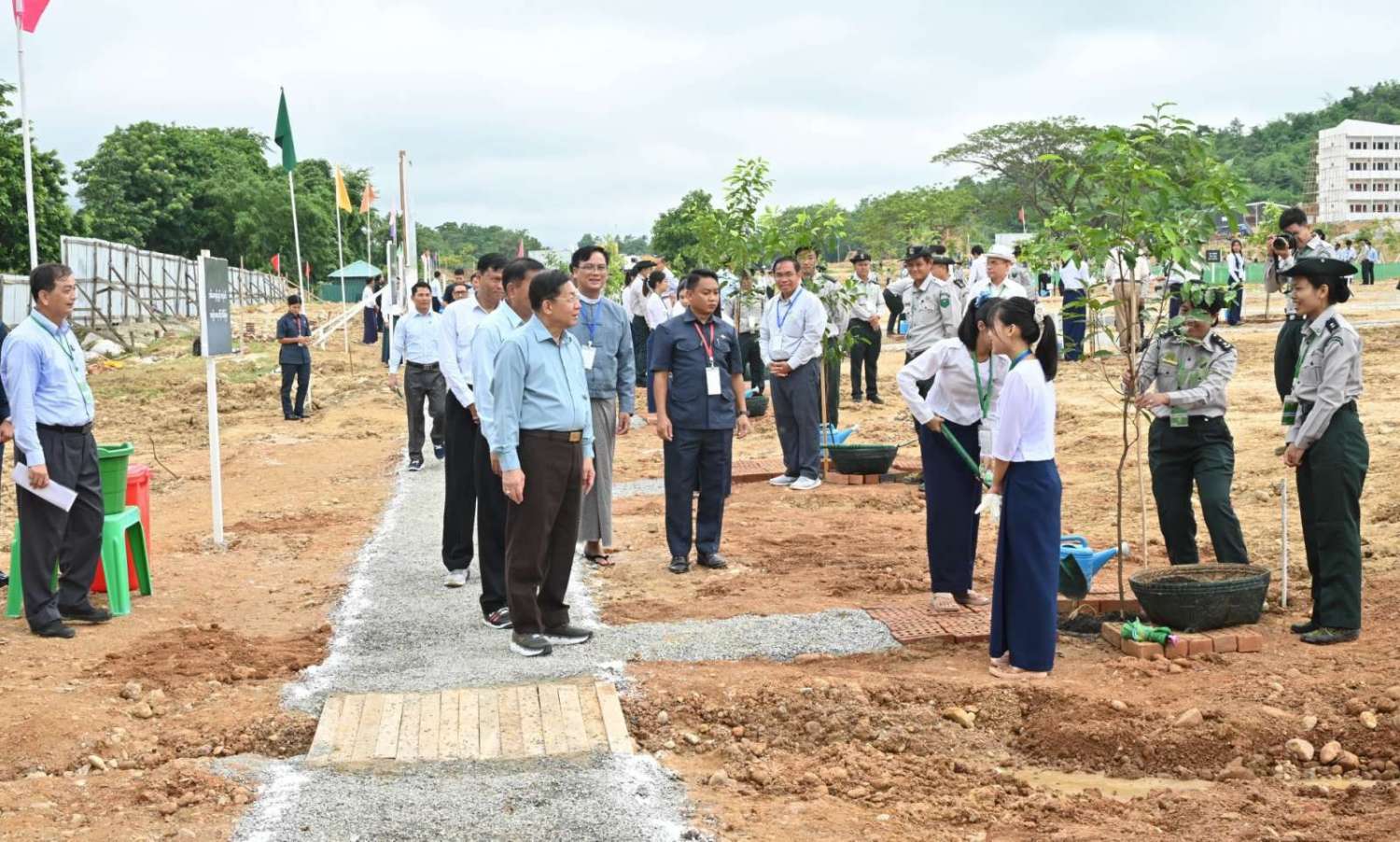 ထို့နောက် နိုင်ငံတော်စီမံအုပ်ချုပ်ရေးကောင်စီဥက္ကဋ္ဌ နိုင်ငံတော်ဝန်ကြီးချုပ်သည် ၂၀၂၄ ခုနှစ် ဒုတိယအကြိမ် မိုးရာသီသစ်ပင်စိုက်ပျိုးပွဲအခမ်းအနားသို့ တက်ရောက်လာကြသူများက ပျိုးပင်များအား တပျော်တပါးစိုက်ပျိုးနေမှုကို လှည့်လည်ကြည့်ရှုအားပေးသည်။