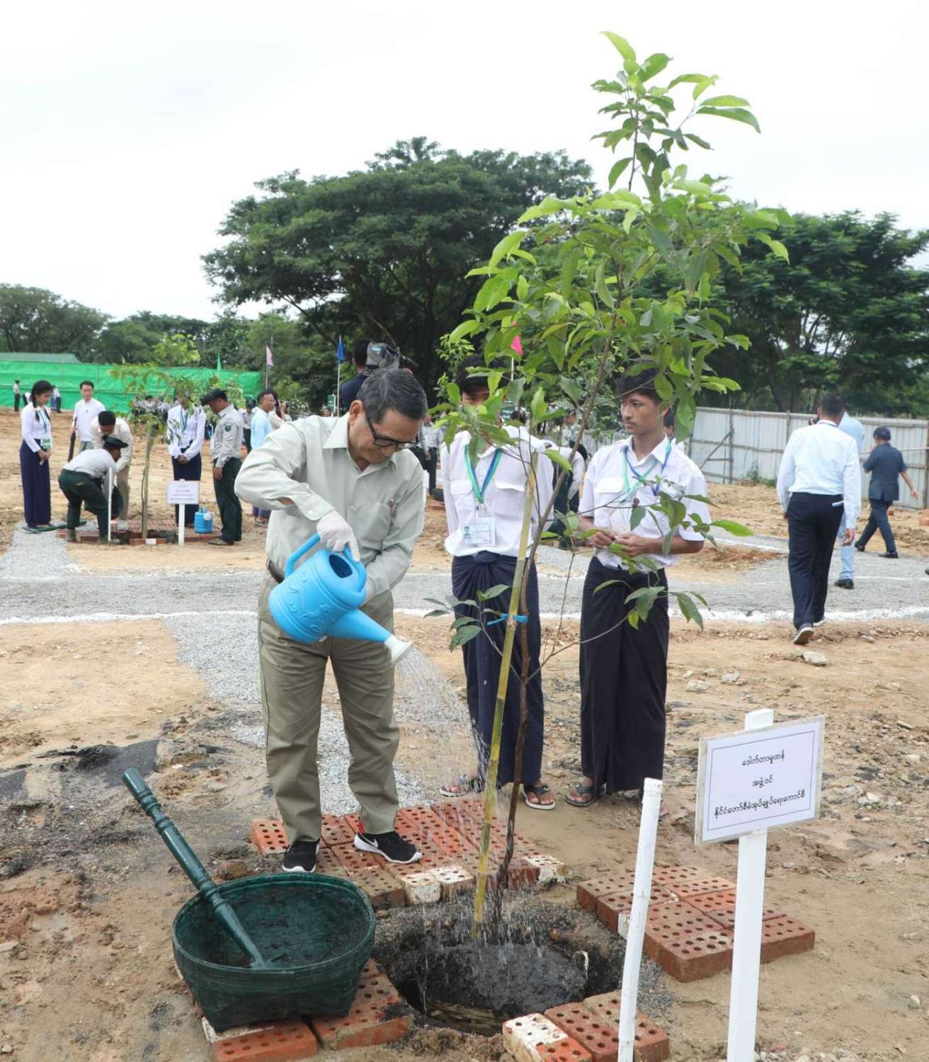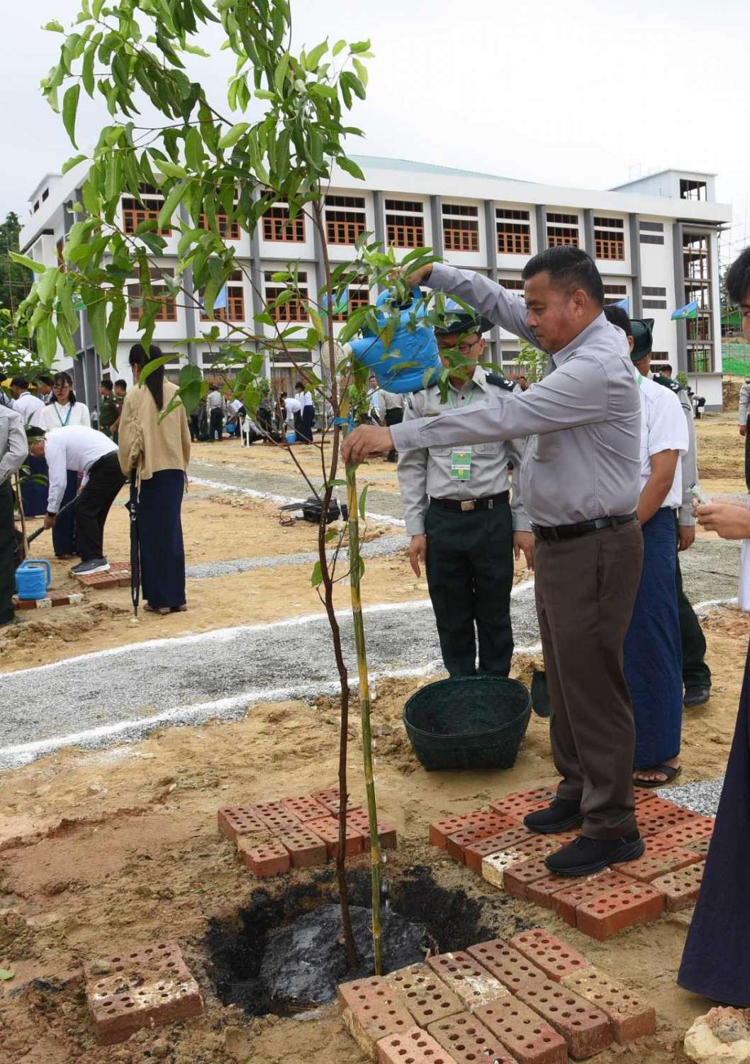 ပြည်ထောင်စုနယ်မြေ၊ နေပြည်တော်၊ ၂၀၂၄ ခုနှစ်၊ ဒုတိယအကြိမ် မိုးရာသီသစ်ပင်စိုက်ပျိုးပွဲအခမ်းအနားကို ယနေ့နံနက်ပိုင်းတွင် ပြည်ထောင်စုနယ်မြေ နေပြည်တော်ရှိ Naypyitaw State Polytechnic University ပရဝုဏ်အတွင်း၌ ကျင်းပရာ နိုင်ငံတော်စီမံအုပ်ချုပ်ရေးကောင်စီဥက္ကဋ္ဌ နိုင်ငံတော်ဝန်ကြီးချုပ် ဗိုလ်ချုပ်မှူးကြီး မင်းအောင်လှိုင် တက်ရောက်၍ ကံ့ကော်ပျိုးပင်ကို ဦးဆောင်စိုက်ပျိုးပေးသည်။