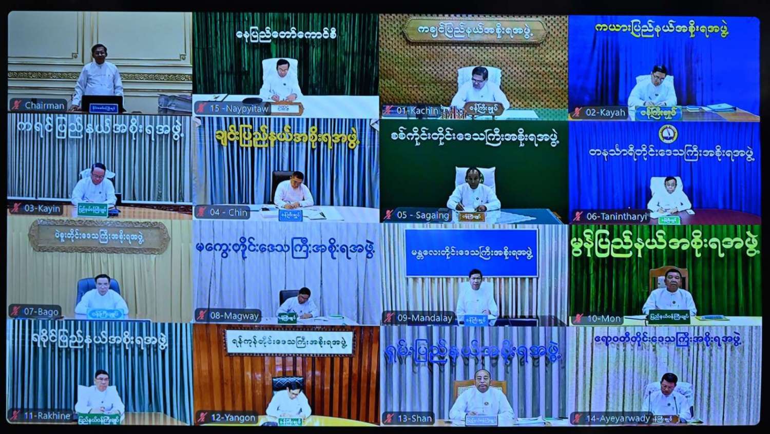 အစည်းအဝေးသို့ ပြည်ထောင်စုဝန်ကြီးများနှင့် တာဝန်ရှိသူများ တက်ရောက်ကြပြီး နေပြည်တော်ကောင်စီဥက္ကဋ္ဌ၊ တိုင်းဒေသကြီးနှင့် ပြည်နယ်ဝန်ကြီးချုပ်များက Video Conferencing ဖြင့်တက်ရောက်ကြသည်။
