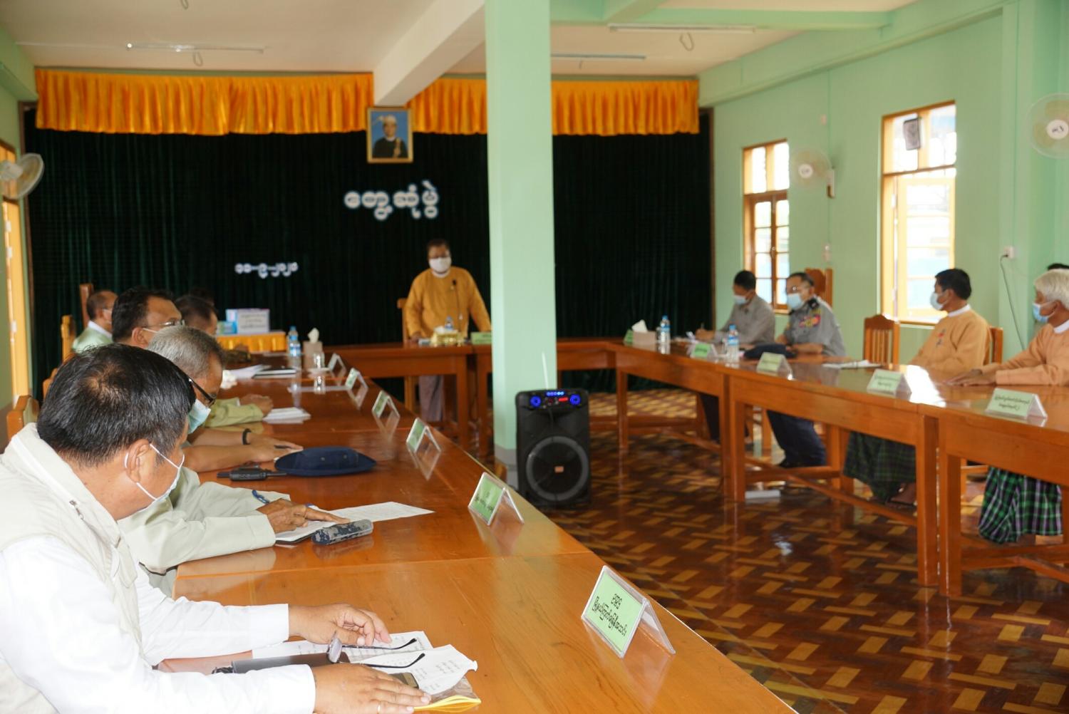 ရှမ်းပြည်နယ်ဝန်ကြီးချုပ် ဒေါက်တာလင်းထွဋ် မဘိမ်းမြို့နယ် ရွေးကောက်ပွဲကော်မရှင်အဖွဲ့ခွဲ အဖွဲ့ဝင်များနှင့် ကိုဗစ်-၁၉ ရောဂါ ကာကွယ်၊ ထိန်းချုပ်၊ ကုသရေးကော်မတီဝင်များအား တွေ့ဆုံ