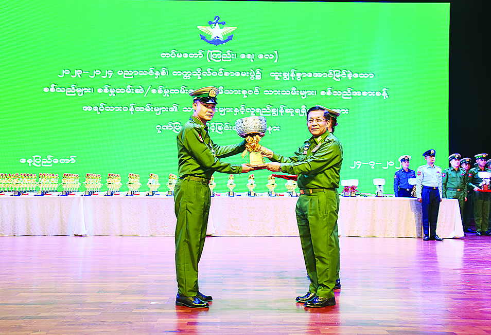 ယင်းနောက် နိုင်ငံတော်စီမံအုပ်ချုပ်ရေးကောင်စီဒုတိယဥက္ကဋ္ဌ ဒုတိယတပ်မတော်ကာကွယ်ရေးဦးစီးချုပ် ကာကွယ်ရေးဦးစီးချုပ် (ကြည်း) ဒုတိယဗိုလ်ချုပ်မှူးကြီးစိုးဝင်းက ၂၀၂၃-၂၀၂၄ ပညာသင်နှစ်တွင် တပ်မတော်ပညာရေးကျောင်းများမှ အောင်ချက်အကောင်းဆုံးပထမ၊ ဒုတိယ၊ တတိယဆုရရှိသည့် ပညာရေးကျောင်းများမှ ကျောင်းအုပ်ကြီးများအား ဂုဏ်ပြုဆုနှင့် ဂုဏ်ပြုမှတ်တမ်းလွှာများ ပေးအပ်ချီးမြှင့်သည်။