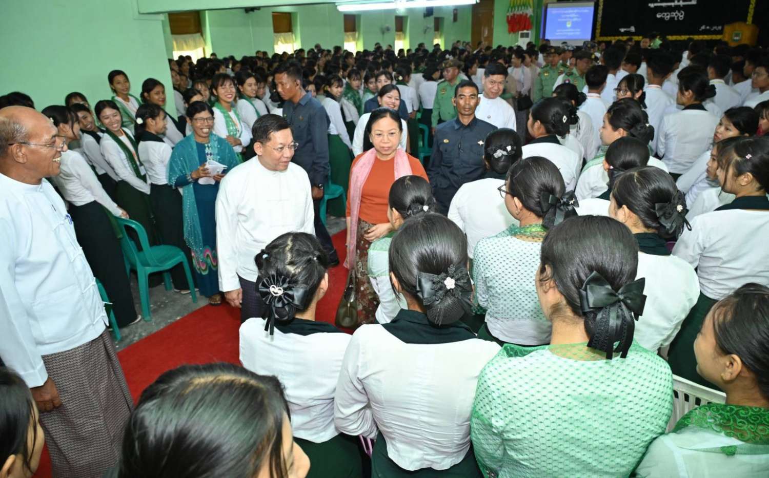 ယင်းနောက် နိုင်ငံတော်စီမံအုပ်ချုပ်ရေးကောင်စီဥက္ကဋ္ဌ နိုင်ငံတော်ဝန်ကြီးချုပ်သည် တက်ရောက်လာကြသည့် နည်းပြ ဆရာ၊ ဆရာမများ၊ ကျောင်းသား၊ ကျောင်းသူများအား ရင်းရင်းနှီးနှီးနှုတ်ဆက်ခဲ့ကြောင်း သတင်းရရှိသည်။