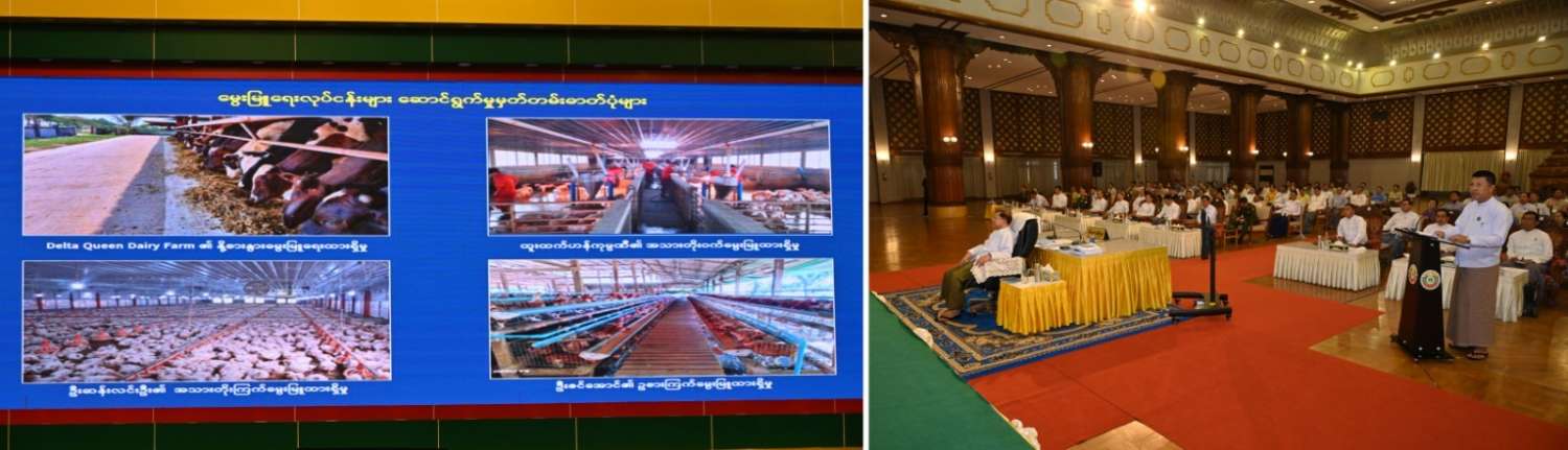 မိမိတို့နိုင်ငံသည် စိုက်ပျိုးမွေးမြူရေးကိုအခြေခံသည့် စီးပွားရေးလုပ်ငန်းကို အဓိကဆောင်ရွက်ခြင်းဖြစ်သဖြင့် အဆိုပါစိုက်ပျိုးမွေးမြူရေးလုပ်ငန်းများကို အခြေခံသည့် စက်မှုလုပ်ငန်းများဖွံ့ဖြိုးတိုးတက်အောင် ဆောင်ရွက်ပေးရမည်ဖြစ်ကြောင်း၊ အလားတူအခြားကုန်ထုတ်လုပ်မှုလုပ်ငန်းများကိုလည်း တိုးတက်အောင်ဆောင်ရွက်ပေးရမည်ဖြစ်ကြောင်း၊ လူတစ်ဦးချင်းစီတွင် စားရေး၊ ဝတ်ရေး၊ နေရေးဟူ၍ရှိပြီး အားလုံးအဆင်ပြေနေစေရေးအတွက် စီးပွားရေးကောင်းမွန်ရန်လိုကြောင်း၊ မိမိတို့နိုင်ငံသည် စားနပ်ရိက္ခာထုတ်လုပ်သည့်နိုင်ငံဖြစ်သဖြင့် စားရေးနှင့်ပတ်သက်၍ အခက်အခဲမရှိကြောင်း၊ မိမိတို့၏ အမျိုးသားရေးရည်မှန်းချက်တွင်လည်း စားရေရိက္ခာဖူလုံရေးပါဝင်ကြောင်း၊ ထို့ကြောင့် တိုင်းဒေသကြီးနှင့်ပြည်နယ်များအားလုံးတွင် ဒေသဝမ်းစာဆန်ဖူလုံမှုရှိအောင် ဆောင်ရွက်ကြရမည်ဖြစ်ပြီး စားရေရိက္ခာဖူလုံမှုရှိအောင် ဆောင်ရွက်ကြရန်လိုကြောင်း။