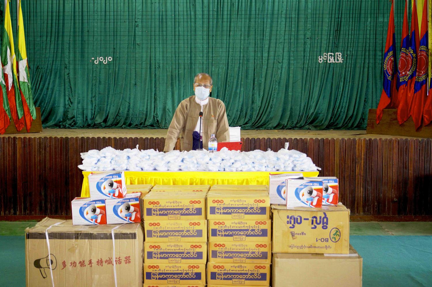 ပွင့်ဖြူမြို့နယ်၌ ကိုဗစ် - ၁၉ ရောဂါ ကာကွယ်ထိန်းချုပ်ရေးလုပ်ငန်းအတွက် အသုံးပြုရန် ကျန်းမာရေးသုံးပစ္စည်းများ ထောက်ပံ့လှူဒါန်း