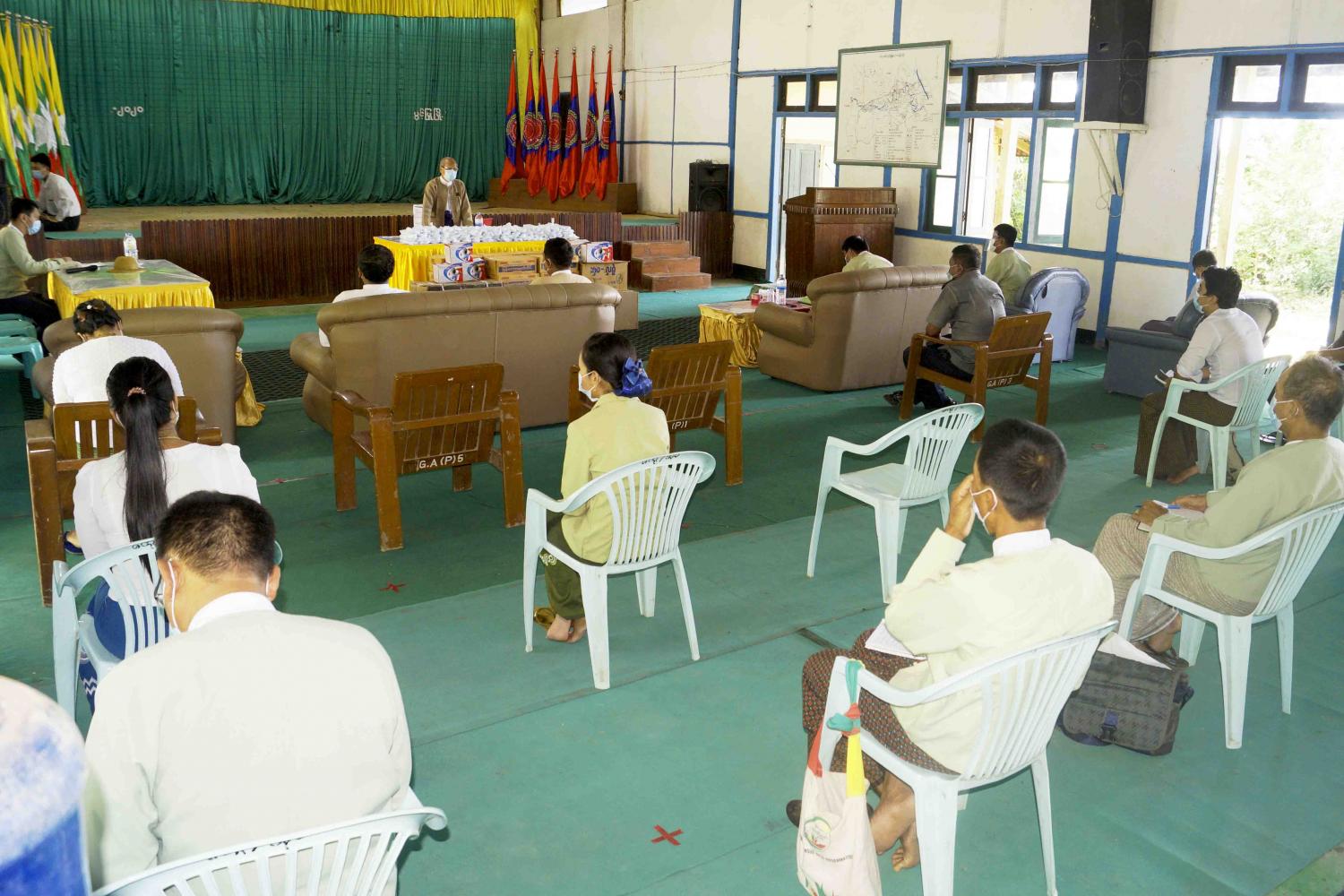 ဆက်လက်၍ မင်းဘူးခရိုင်ကိုဗစ် - ၁၉ ရောဂါကာကွယ်ထိန်းချုပ်ရေးနှင့် အရေးပေါ်တုံ့ပြန်ရေးကော်မတီဥက္ကဋ္ဌ (ခရိုင်အုပ်ချုပ်ရေးမှူး) ဦးစန်းဌေး က ကိုဗစ် - ၁၉ ရောဂါကြိုတင်ကာကွယ်ထိန်းချုပ်နိုင်ရေးအတွက် ကျန်းမာရေးသုံး အထောက်အကူပစ္စည်းများ ထောက်ပံ့လှူဒါန်းရခြင်း၏ ရည်ရွယ်ချက်နှင့် လှူဒါန်းပစ္စည်းများကို ရှင်းလင်းဆွေးနွေး ပြောကြားသည်။