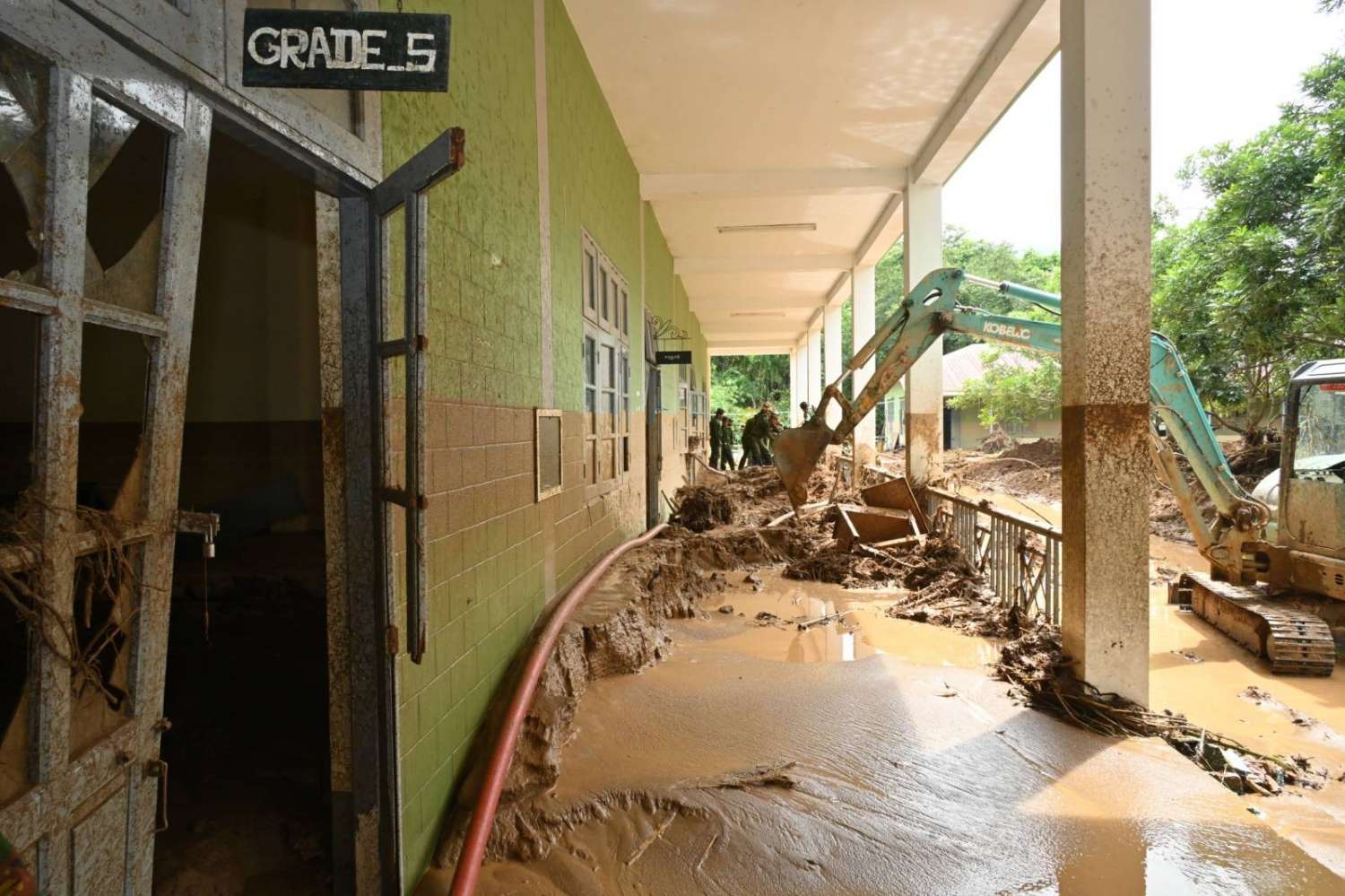 ယင်းနောက် နိုင်ငံတော်စီမံအုပ်ချုပ်ရေးကောင်စီဥက္ကဋ္ဌ တပ်မတော်ကာကွယ်ရေးဦးစီးချုပ်နှင့် အဖွဲ့ဝင်များသည် ရေကြီးရေလျှံမှုများကြောင့် ထိခိုက်ပျက်စီးခဲ့ပြီး ရေများပြန်လည်ကျဆင်းသွားသည့်အချိန်တွင် နုန်းတင်ကျန်ခဲ့သည့် အထက်တန်းကျောင်း၌ နုန်းများဖယ်ရှားရှင်းလင်းခြင်းနှင့် သန့်ရှင်းရေးလုပ်ငန်းဆောင်ရွက်နေမှုများကို သွားရောက်ကြည့်ရှုစစ်ဆေးရာ ကျောင်းတာဝန်ခံ ဆရာ၊ ဆရာမများက ရေကြီးရေလျှံမှု ဖြစ်ပေါ်ခဲ့အခြေအနေများနှင့် သန့်ရှင်းရေးလုပ်ငန်းဆောင်ရွက်နေမှုတို့ကို ရှင်းလင်းတင်ပြကြသည်။ ရှင်းလင်းတင်ပြမှုများအပေါ် နိုင်ငံတော်စီမံအုပ်ချုပ်ရေးကောင်စီဥက္ကဋ္ဌ တပ်မတော်ကာကွယ်ရေးဦးစီးချုပ် ကျောင်းပြန်လည်ဖွင့်လှစ် သင်ကြားပေးနိုင်ရေးအတွက် လိုအပ်သည်များကို အမြန်ဆုံးဆောင်ရွက်ပေးသွားရန် တာဝန်ရှိသူများကိုမှာကြားသည်။