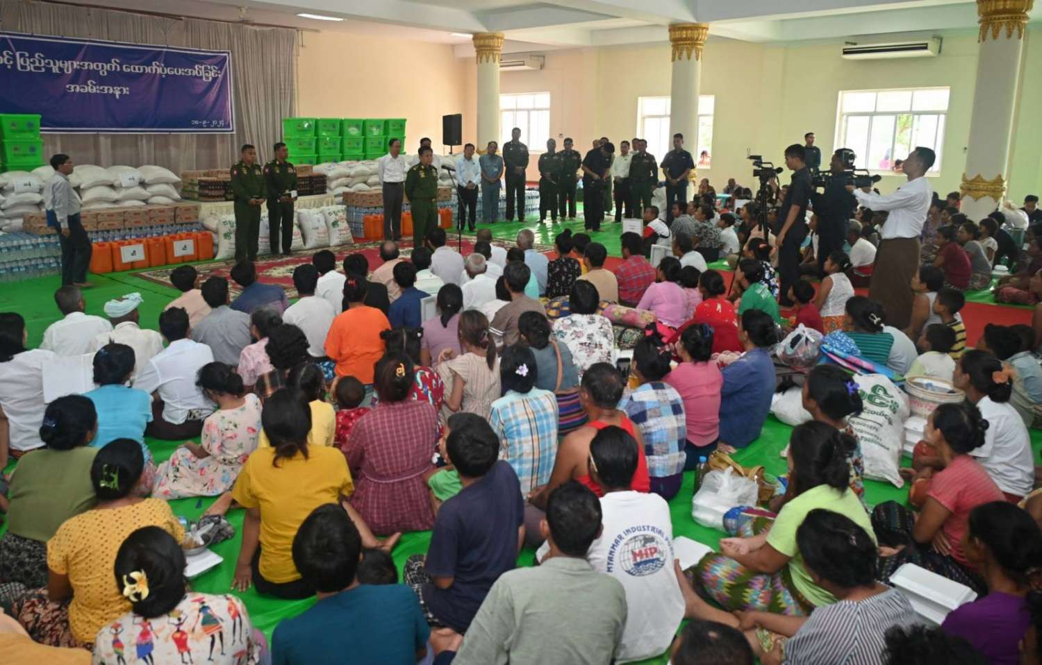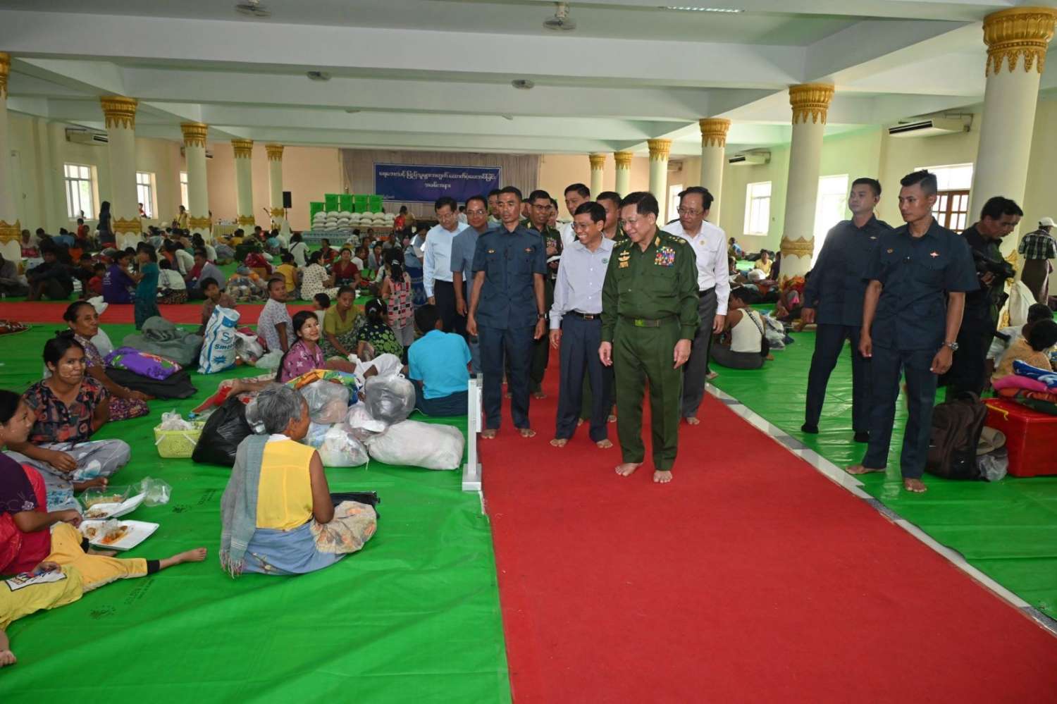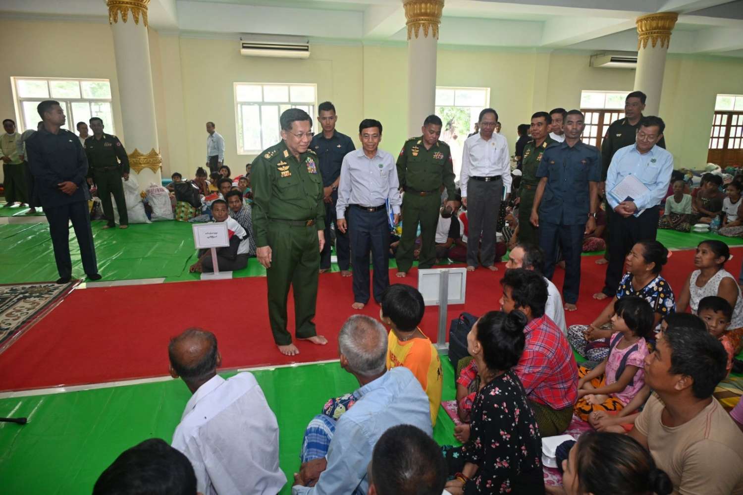 နိုင်ငံတော်စီမံအုပ်ချုပ်ရေးကောင်စီဥက္ကဋ္ဌ တပ်မတော်ကာကွယ်ရေးဦးစီးချုပ် ဗိုလ်ချုပ်မှူးကြီး မင်းအောင်လှိုင်သည် ယနေ့နံနက်ပိုင်းတွင် ကောင်စီတွဲဖက်အတွင်းရေးမှူး ဗိုလ်ချုပ်ကြီး ရဲဝင်းဦး၊ ပြည်ထောင်စုဝန်ကြီးများ၊ နေပြည်တော်ကောင်စီဥက္ကဋ္ဌ၊ ကာကွယ်ရေးဦးစီးချုပ်ရုံးမှ အဆင့်မြင့်တပ်မတော်အရာရှိကြီးများနှင့် တာဝန်ရှိသူများလိုက်ပါ၍ ပျဉ်းမနားမြို့နယ်၊ မင်္ဂလာဗျူဟာသာသနာ့ဗိမာန် ရေဘေးရှောင်ကယ်ဆယ်ရေးစခန်းရှိ ရေဘေးရှောင်ပြည်သူများအား သွားရောက်အားပေးစကားပြောကြားပြီး ထောက်ပံ့ရေးပစ္စည်းများပေးအပ်သည်။