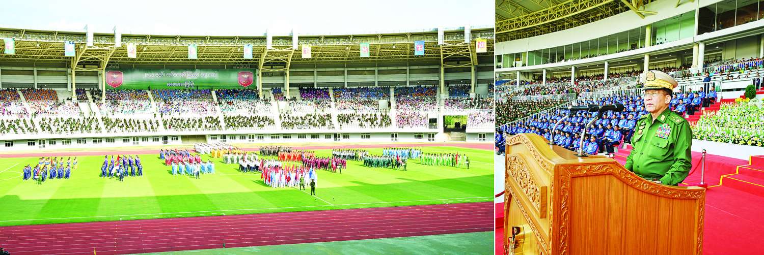 ဆက်လက်၍ နိုင်ငံတော်စီမံအုပ်ချုပ်ရေးကောင်စီဥက္ကဋ္ဌ တပ်မတော်ကာကွယ်ရေးဦးစီးချုပ်က အဖွင့်အမှာစကားပြောကြားရာတွင် တပ်မတော်အနေဖြင့် ယခုကဲ့သို့ အားကစားပြိုင်ပွဲများကို ကျင်းပနေခြင်းသည် တပ်မတော်(ကြည်း၊ ရေ၊ လေ) လက်ရွေးစင်အားကစားသမားများမှ နိုင်ငံ့ဂုဏ်ကိုဆောင်နိုင်သည့် မြန်မာ့လက်ရွေးစင် အားကစားသမားများအဖြစ်ကို တက်လှမ်းနိုင်စေရန် ရည်ရွယ်ကျင်းပနေခြင်းဖြစ်သကဲ့သို့ မျိုးဆက်သစ်လူငယ်အားကစားသမားကောင်းများ စဉ်ဆက်မပြတ် ပေါ်ထွန်းလာစေရန် ရည်ရွယ်မွေးထုတ်ပေးနေခြင်းလည်းဖြစ်ကြောင်း။