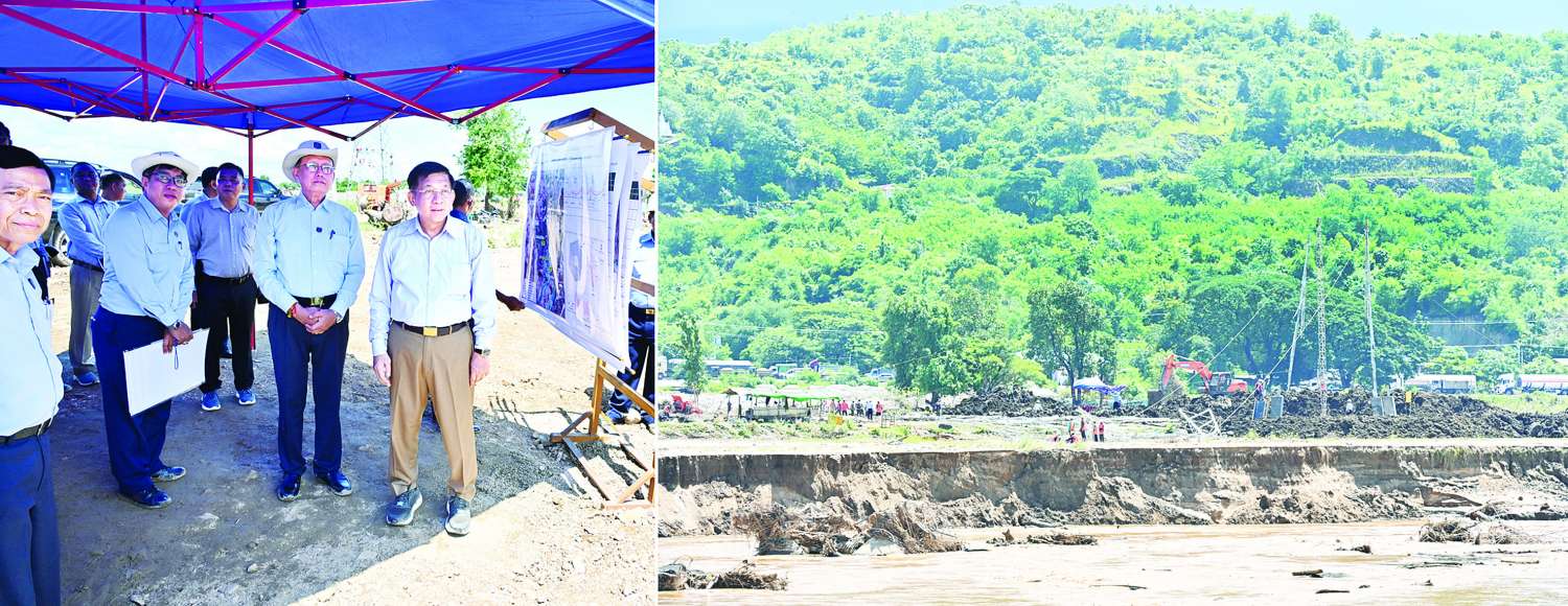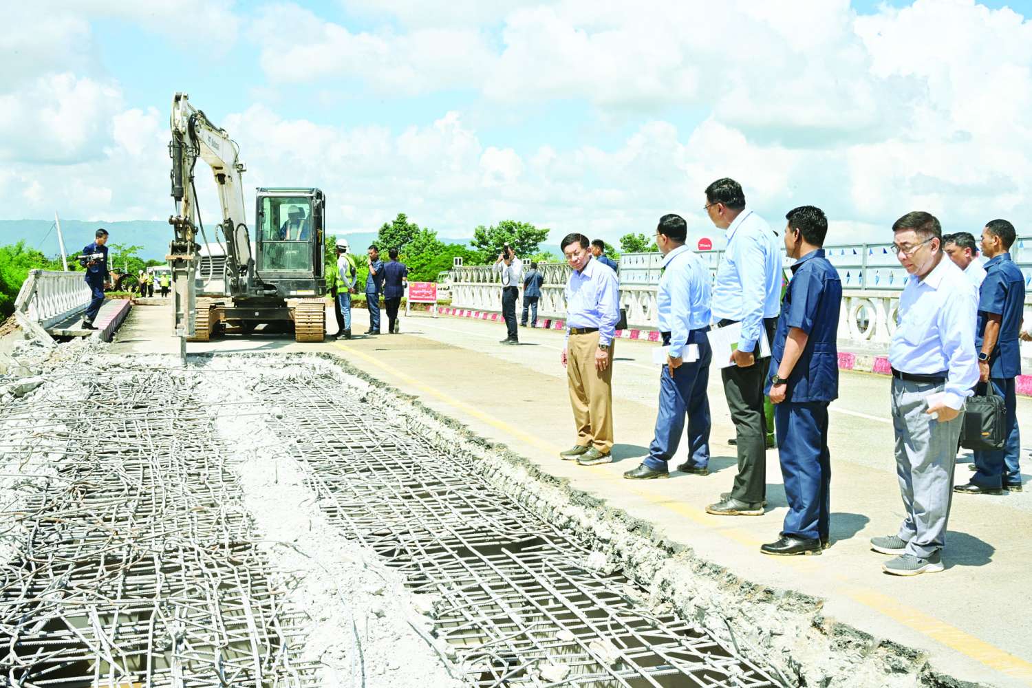 ယင်းနောက် နိုင်ငံတော်စီမံအုပ်ချုပ်ရေးကောင်စီဥက္ကဋ္ဌ နိုင်ငံတော်ဝန်ကြီးချုပ်နှင့် အဖွဲ့ဝင်များသည် နဝင်းချောင်းတံတား (အဆုံ) နေရာသို့ ရောက်ရှိကြပြီး ရေတိုက်စားမှုကြောင့် တံတားချဉ်းကပ်လမ်း ပြိုကျပျက်စီးခဲ့မှုအား ယာယီဘေလီတံတား တည်ဆောက်ပြုပြင်ပြီးစီးမှုနှင့် တံတားချဉ်းကပ်လမ်း ကမ်းကပ်ခုံအား ပြန်လည်ပြုပြင်ဆောင်ရွက်နေမှုအခြေအနေများကို ကြည့်ရှုစစ်ဆေးပြီး တာဝန်ရှိသူများ၏ တင်ပြချက်များအပေါ် လိုအပ်သည်များ မှာကြားခဲ့ကြောင်း သတင်းရရှိသည်။