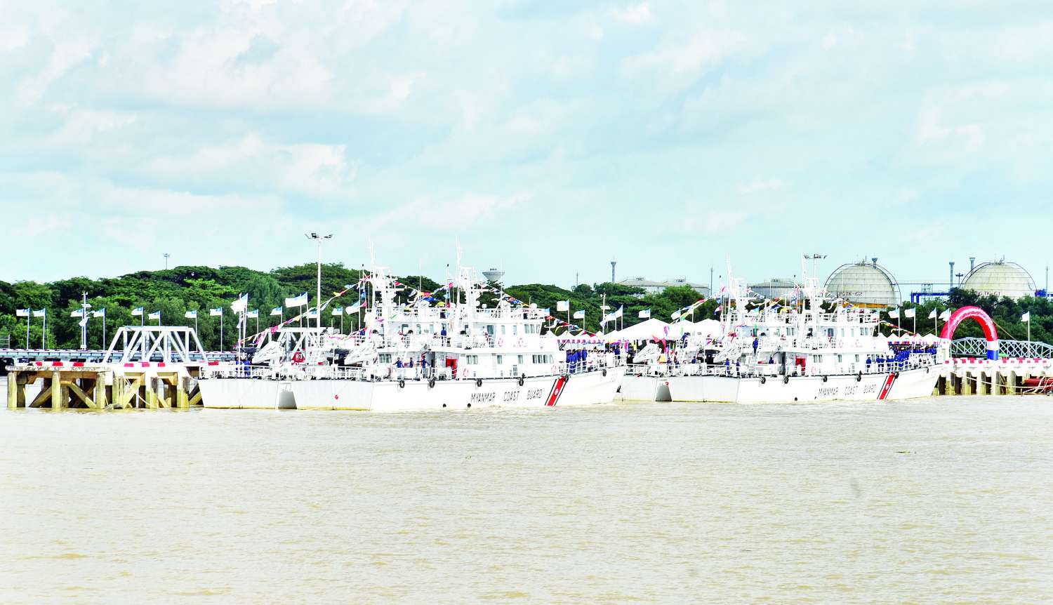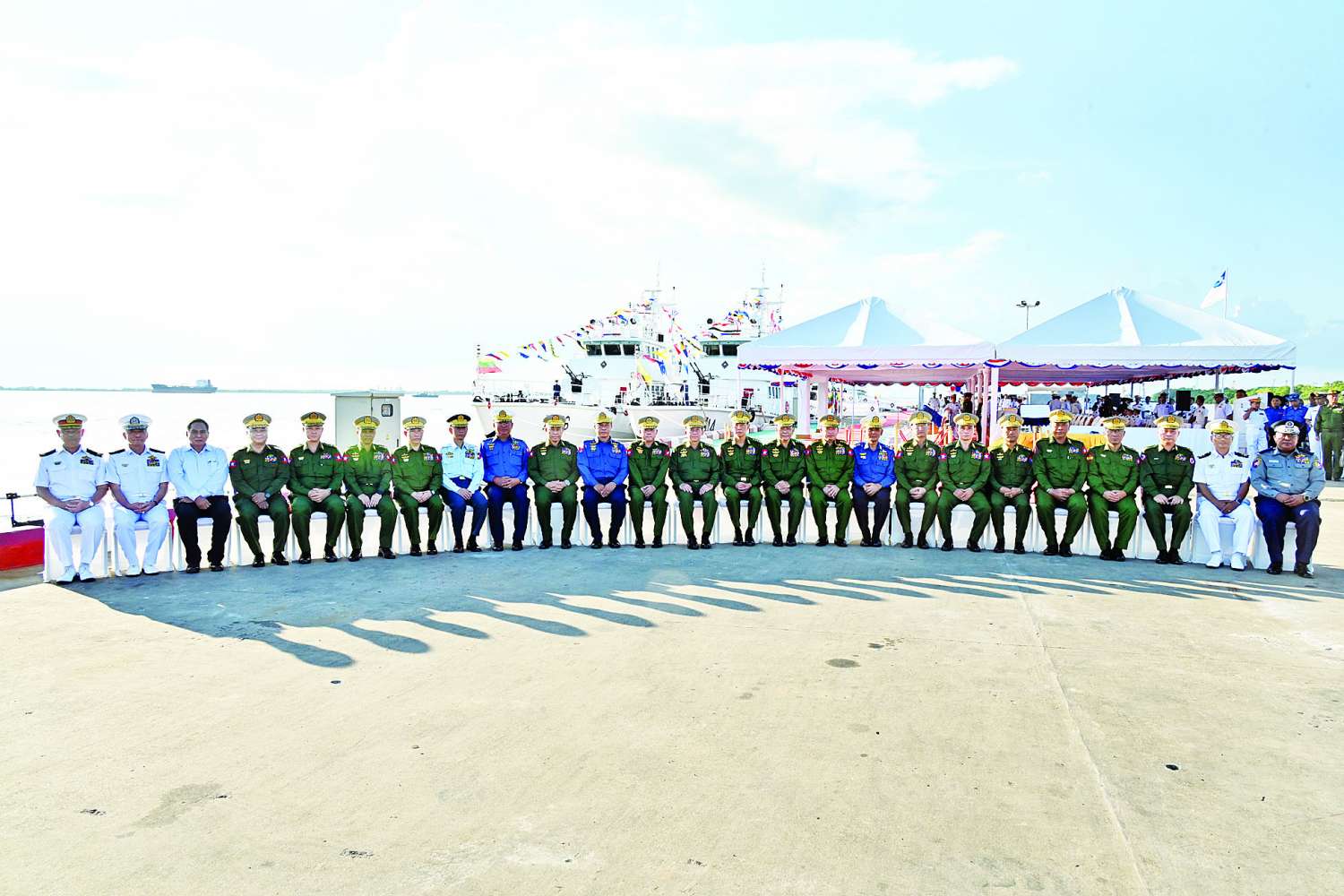ပြည်ထောင်စုသမ္မတမြန်မာနိုင်ငံတော် ကမ်းခြေစောင့်တပ်ဖွဲ့ကွပ်ကဲမှုဌာနချုပ် တည်ထောင်ခြင်း(၃)နှစ်ပြည့် နှစ်ပတ်လည်နေ့အထိမ်းအမှတ်နှင့် ရေကြောင်းဆိုင်ရာအကျိုးစီးပွားများနှင့် မြန်မာ့ပင်လယ်ကမ်းရိုးတန်းလုံခြုံရေးအား ကာကွယ်စောင့်ရှောက်ရန်အတွက် ၄၈ မီတာ အမြန်သွားကင်းလှည့်ရေယာဉ်(၄)စီး တပ်တော်ဝင်ခြင်းအခမ်းအနားကို ယနေ့မွန်းလွဲပိုင်းတွင် အမှတ်(၃)ရေတပ်ဆိပ်ခံတံတား(သီလဝါ)၌ ကျင်းပပြုလုပ်ရာ နိုင်ငံတော်စီမံအုပ်ချုပ်ရေးကောင်စီဥက္ကဋ္ဌ တပ်မတော်ကာကွယ်ရေးဦးစီးချုပ် ဗိုလ်ချုပ်မှူးကြီးမင်းအောင်လှိုင် တက်ရောက်ဂုဏ်ပြုအမှာစကား ပြောကြားသည်။