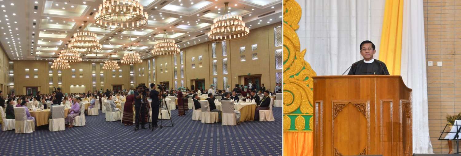 (၂၅)ကြိမ်မြောက် ငွေရတုအထိမ်းအမှတ် မြန်မာ့ရိုးရာယဉ်ကျေးမှု အဆို၊ အက၊ အရေး၊ အတီးပြိုင်ပွဲ ဂုဏ်ပြုမှတ်တမ်းလွှာပေးအပ်ပွဲနှင့် ဂုဏ်ပြုညစာစားပွဲအခမ်းအနားကို ယနေ့ညနေပိုင်းတွင် နေပြည်တော်ရှိ မြန်မာအပြည်ပြည်ဆိုင်ရာ ကွန်ဗင်းရှင်းဗဟိုဌာန ၂ ၌ ကျင်းပရာ နိုင်ငံတော်စီမံအုပ်ချုပ်ရေးကောင်စီဥက္ကဋ္ဌ နိုင်ငံတော်ဝန်ကြီးချုပ် ဗိုလ်ချုပ်မှူးကြီး မင်းအောင်လှိုင် တက်ရောက်ချီးမြှင့်သည်။