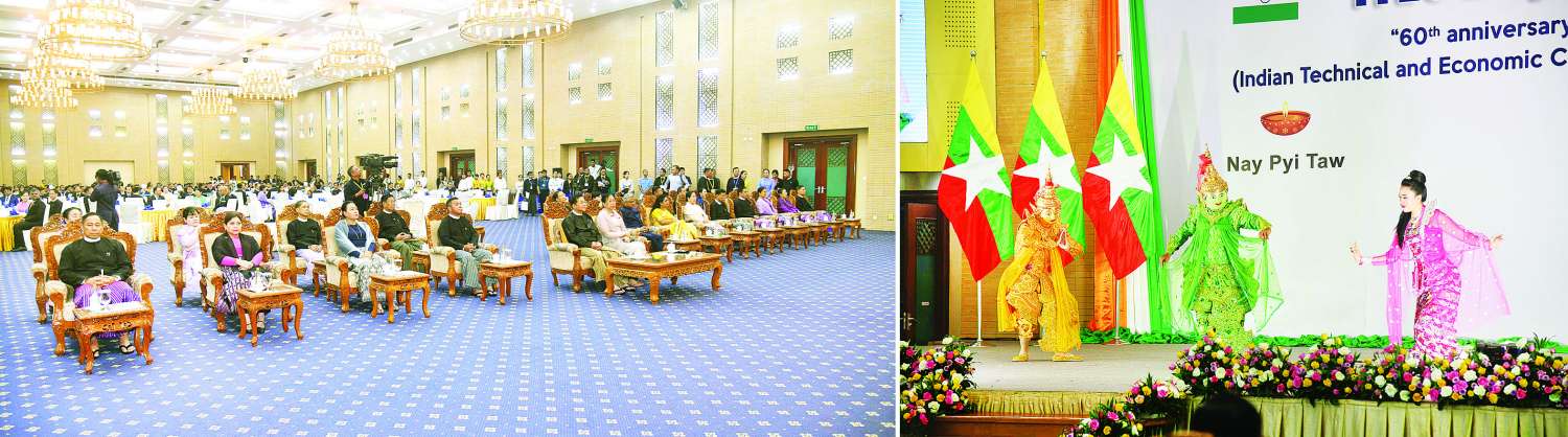 ၂၀၂၄ ခုနှစ်၊ အိန္ဒိယနည်းပညာနှင့် စီးပွားရေးပူးပေါင်းဆောင်ရွက်မှုအစီအစဉ်၏ နှစ် (၆၀) ပြည့် အထိမ်းအမှတ်အခမ်းအနားကို ယနေ့ညနေပိုင်းတွင် နေပြည်တော်ရှိမြန်မာအပြည်ပြည်ဆိုင်ရာကွန်ဗင်းရှင်းဗဟိုဌာန-၂ ၌ ကျင်းပပြုလုပ်ရာ နိုင်ငံတော်စီမံအုပ်ချုပ်ရေးကောင်စီဥက္ကဋ္ဌ နိုင်ငံတော်ဝန်ကြီးချုပ် ဗိုလ်ချုပ်မှူးကြီး မင်းအောင်လှိုင် တက်ရောက်အမှာစကားပြောကြားသည်။