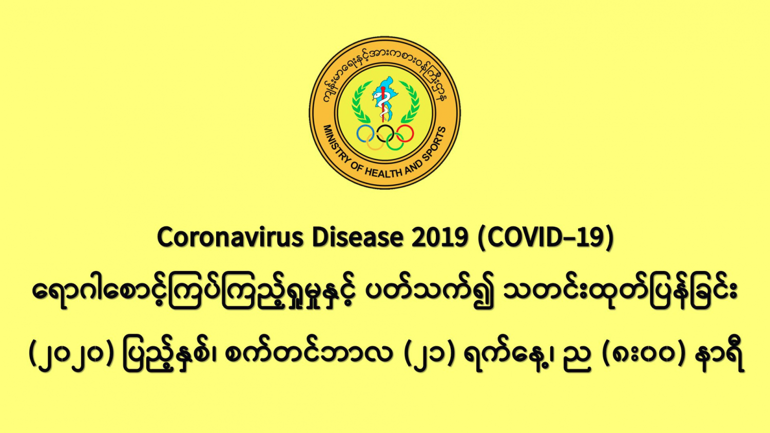 - အမျိုးသားကျန်းမာရေးဓာတ်ခွဲမှုဆိုင်ရာဌာန (ရန်ကုန်) (NHL)မှ (ပထမအသုတ်) ဓာတ်ခွဲ နမူနာ (၇၃၈)ခု၊