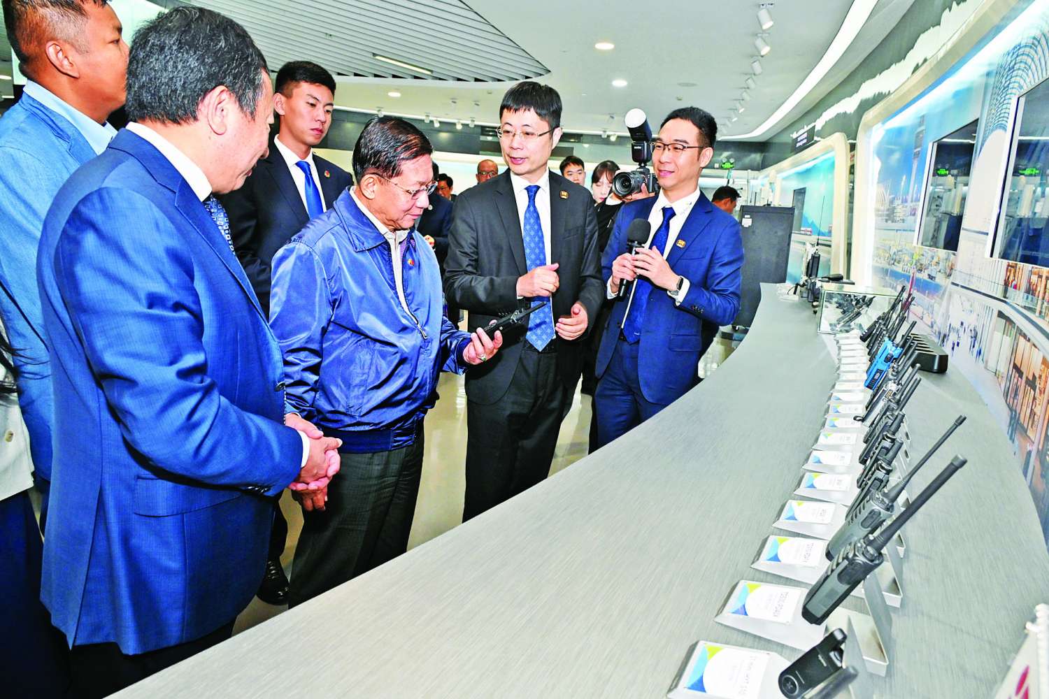 ယင်းနောက် နိုင်ငံတော်စီမံအုပ်ချုပ်ရေးကောင်စီဥက္ကဋ္ဌ နိုင်ငံတော်ဝန်ကြီးချုပ်နှင့် အဖွဲ့ဝင်များသည် ရှန်းကျန့်မြို့ရှိ Hytera Communications Corporation Limited သို့သွားရောက်လေ့လာကြရာ Founder and Chairman ဖြစ်သူ Mr. Chen Qingzhou နှင့် တာဝန်ရှိသူများက ကြိုဆိုနှုတ်ဆက်ကြသည်။