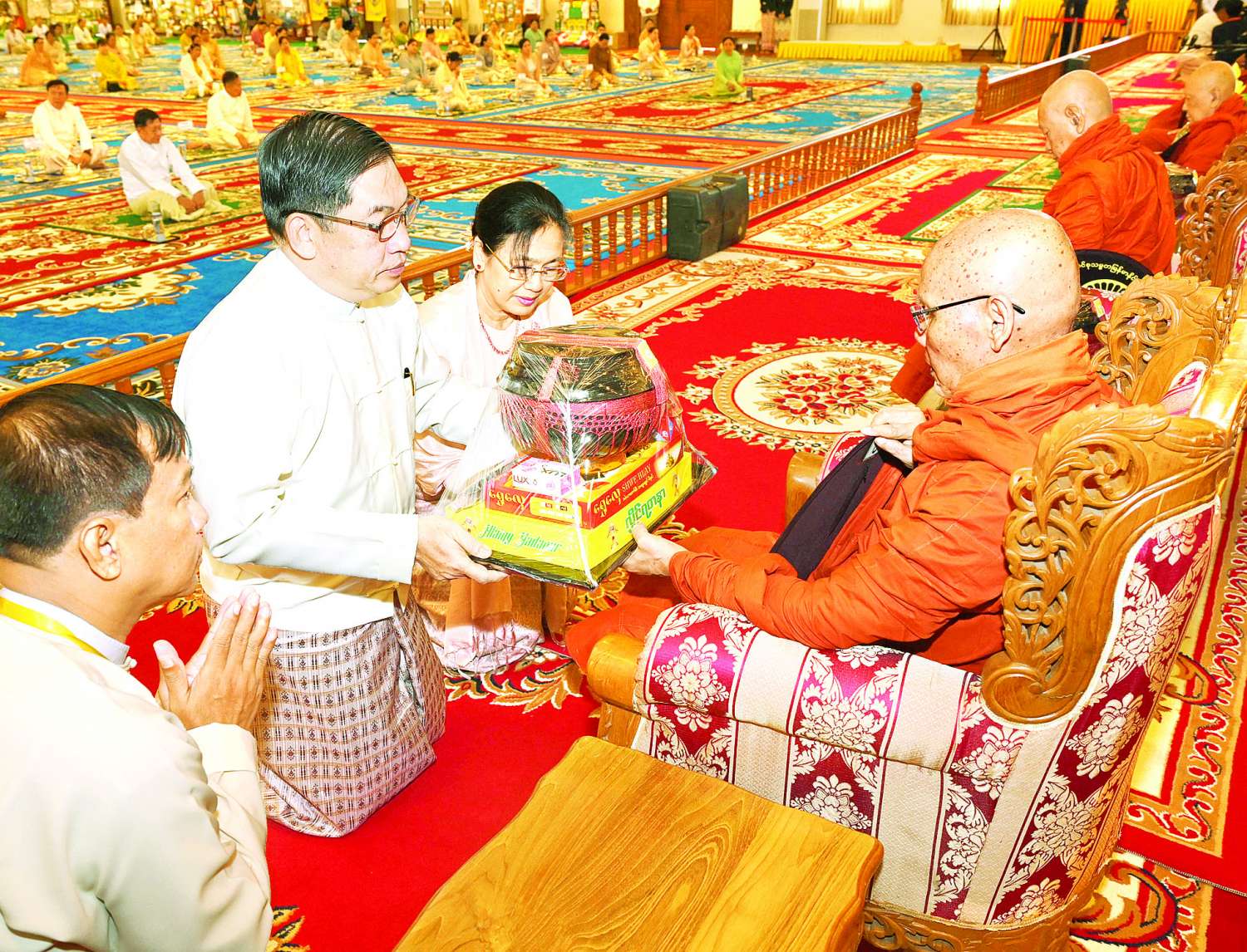အခမ်းအနားသို့ နိုင်ငံတော်သံဃမဟာနာယကအဖွဲ့ဥက္ကဋ္ဌ သန်လျင်မြို့၊ မင်းကျောင်းပထမပြန်စာသင်တိုက် ပဓာနနာယက အဂ္ဂမဟာပဏ္ဍိတ၊ အဂ္ဂမဟာသဒ္ဓမ္မ ဇောတိကဓဇ ဒေါက်တာဘဒ္ဒန္တစန္ဒိမာဘိဝံသ၊ နိုင်ငံတော်သံဃမဟာနာယကအဖွဲ့ အကျိုးတော်ဆောင် မန္တလေးမြို့၊ မစိုးရိမ်တိုက်သစ် မဟာနာယက၊ ဓမ္မသမိဒ္ဓိကျောင်း ဆရာတော်အဂ္ဂမဟာပဏ္ဍိတ၊ အဂ္ဂမဟာသဒ္ဓမ္မဇောတိကဓဇ၊ မဟာဓမ္မကထိက ဗဟုဇနဟိတဓရ ဘဒ္ဒန္တဝါသေဋ္ဌာဘိဝံသ၊ ရွှေကျင်နိကာယဥပဥက္ကဋ္ဌ တွဲဖက်ရွှေကျင်သာသနာပိုင် မဟာသုဗောဓာရုံ ကျောင်းတိုက်များ၏ မဟာနာယက၊ အဘိဓဇမဟာရဋ္ဌဂုရု၊ ပါမောက္ခချုပ်ဆရာတော်ကြီး ဒေါက်တာ ဘဒ္ဒန္တနန္ဒမာလာဘိဝံသနှင့် ဥပ္ပါတသန္တိစေတီတော်ဂေါပကအဖွဲ့ ဩဝါဒါစရိယ ဆရာတော်ကြီးများ အမှူးပြုသည့် ပင့်ဖိတ်ထားသော ဆရာတော်ကြီး ၂၇ ပါး ကြွရောက်ချီးမြှင့်တော်မူကြပြီး နိုင်ငံတော်စီမံအုပ်ချုပ်ရေးကောင်စီဥက္ကဋ္ဌ နိုင်ငံတော်ဝန်ကြီးချုပ် ဗိုလ်ချုပ်မှူးကြီး မင်းအောင်လှိုင်နှင့် ဇနီး ဒေါ်ကြူကြူလှတို့နှင့်အတူ ကောင်စီဒုတိယဥက္ကဋ္ဌ ဒုတိယဝန်ကြီးချုပ် ဒုတိယဗိုလ်ချုပ်မှူးကြီး စိုးဝင်းနှင့် ဇနီးဒေါ်သန်းသန်းနွယ်၊ ကောင်စီအတွင်းရေးမှူး နှင့်ဇနီး၊ တွဲဖက်အတွင်းရေးမှူးနှင့် ဇနီး၊ ကောင်စီဝင်များနှင့် ဇနီးများ၊ ပြည်ထောင်စုအဆင့်ပုဂ္ဂိုလ်များ၊ ပြည်ထောင်စုဝန်ကြီးများနှင့်ဇနီးများ နေပြည်တော်ကောင်စီဥက္ကဋ္ဌ၊ ကာကွယ်ရေးဦးစီးချုပ်ရုံးမှ အဆင့်မြင့်တပ်မတော်အရာရှိကြီးများနှင့် ဇနီးများ၊ နေပြည်တော်တိုင်းစစ်ဌာနချုပ် တိုင်းမှူးနှင့် တာဝန်ရှိသူများ တက်ရောက်ကြသည်။