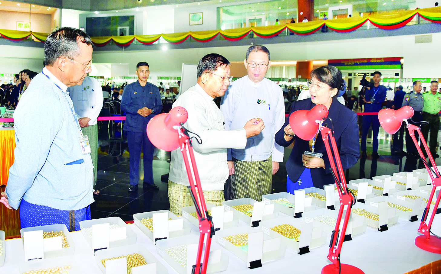 နိုင်ငံတော်အတွက် နိုင်ငံခြားဝင်ငွေရရှိရန်နှင့် နိုင်ငံသားများအတွက် စီးပွားရေးအကျိုးဖြစ်ထွန်းမှုများ ရရှိနိုင်စေရန်အတွက် တူးဖော်ထုတ်လုပ်ထားသည့် ကျောက်မျက်ရတနာများကို ရောင်းချနိုင်မည့် မြန်မာ့ကျောက်မျက်ရတနာပြပွဲများကို ၁၉၆၄ ခုနှစ်မှ စတင်၍ ကျင်းပခဲ့ကြောင်း၊ ယခုပြပွဲတွင် ပုလဲအတွဲပေါင်း ၂၈၀ ၊ ကျောက်မျက်အတွဲပေါင်း ၁၆၀ နှင့် ကျောက်စိမ်းအတွဲပေါင်း ၄၈၀၀တို့ကို ပြည်တွင်း ပြည်ပ ရတနာကုန်သည်များအား အိတ်ဖွင့်တင်ဒါစနစ်ဖြင့် အမေရိကန်ဒေါ်လာ၊ ယူရိုငွေ၊ ယွမ်ငွေ၊ ထိုင်းဘတ်ငွေ၊ မြန်မာကျပ်ငွေနှင့် မြန်မာနိုင်ငံတော်ဗဟိုဘဏ်က လက်ခံသည့် နိုင်ငံခြားငွေအမျိုးအစားများဖြင့် စည်းမျဉ်းစည်းကမ်း သတ်မှတ်ချက်များနှင့်အညီ ရောင်းချပေးသွားမည်ဖြစ်ကြောင်းနှင့် ပြပွဲကို နိုဝင်ဘာ ၁၈ ရက်မှ ၂၇ ရက်အထိ ခင်းကျင်းပြသရောင်းချပေးသွားမည်ဖြစ်ကြောင်းနှင့် ယနေ့တွင် ဖွင့်ပွဲအခမ်းအနား၌ ပြည်တွင်း၊ ပြည်ပမှ ကျောက်မျက်လုပ်ငန်းရှင် ၄၅၀၀ ကျော်လာရောက်ကြည့်ရှုလေ့လာခဲ့ကြောင်း သတင်းရရှိသည်။
