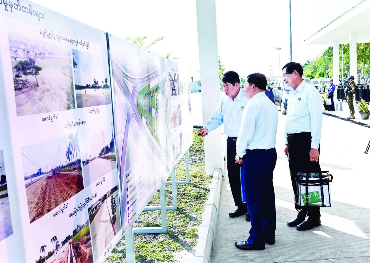 ထို့နောက် နိုင်ငံတော်စီမံအုပ်ချုပ်ရေးကောင်စီဥက္ကဋ္ဌ နိုင်ငံတော်ဝန်ကြီးချုပ်သည် လှိုင်သာယာမြို့နယ် အကွက်ချပုံစံငယ်အားကြည့်ရှု၍ မြို့ပြဖွံ့ဖြိုးတိုးတက်ရေးအတွက် ဆောင်ရွက်နိုင်မည့်အခြေအနေများကို တာဝန်ရှိသူများအား မှာကြားသည်။
