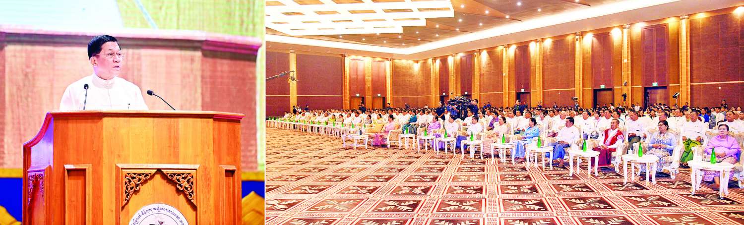မိမိတို့ နိုင်ငံတော်စီမံအုပ်ချုပ်ရေးကောင်စီအနေဖြင့် နိုင်ငံတော်နှင့် တိုင်းရင်းသားပြည်သူများအားလုံး၏ ငြိမ်းချမ်းသာယာဝပြောသည့် အနာဂတ်၊ ကောင်းမွန်သည့် ပစ္စုပ္ပန်ကို ကြိုးစားတည်ဆောက်လျက်ရှိကြောင်း၊ ထိုသို့ဆောင်ရွက်ရာတွင် စာပေပညာရှင်ကြီးများ၏အားသည် အလွန်အရေးပါပြီး ကောင်းကျိုးများစွာရရှိနိုင်မည်ဟုလည်း ယုံကြည်ကြောင်း၊ နိုင်ငံတော်အနေဖြင့်လည်း စာပေအနုပညာကဏ္ဍအသီးသီးမှ ပညာရှင်များ မိမိတို့၏ အနုပညာကို အရည်အသွေးမြင့်မားစွာ၊ လွတ်လပ်စွာ ဖန်တီးပုံဖော်နိုင်ရေးတတ်စွမ်းသမျှ အားပေးကူညီဖြည့်ဆည်းပေးလျက်ရှိကြောင်း၊ ယခုအခါ စာပေပညာရှင်များနှင့် စာပေလောကအကျိုးကို ဖြည့်ဆည်းပေးမည့် “စာဆိုဗိမာန်” အဆောက်အအုံကြီးကိုလည်း အိန္ဒိယနိုင်ငံအစိုးရနှင့် ပူးပေါင်းပြီး အကောင်အထည်ဖော်ဆောင်ရွက်နေပြီဖြစ်ကြောင်း။