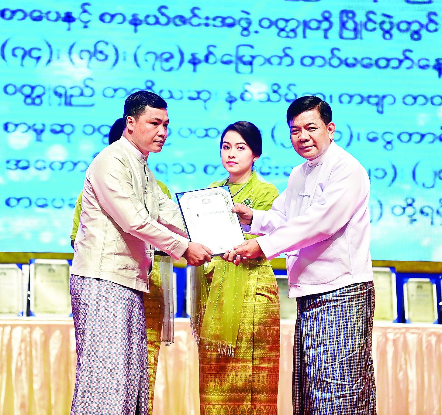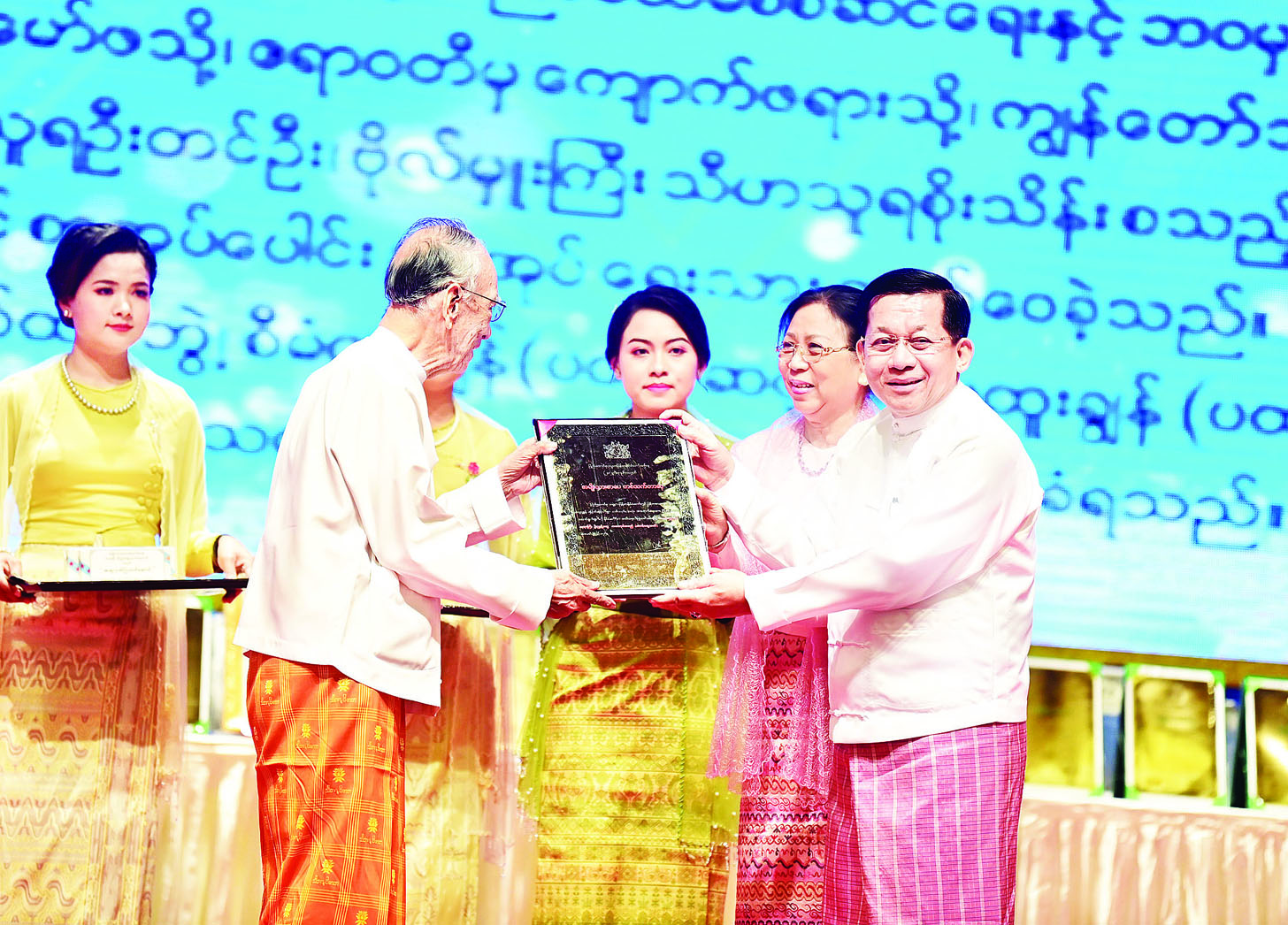 ယင်းနောက် နိုင်ငံတော်စီမံအုပ်ချုပ်ရေးကောင်စီဥက္ကဋ္ဌ နိုင်ငံတော်ဝန်ကြီးချုပ်နှင့် ဇနီးတို့က ၂၀၂၃ ခုနှစ်၊ အမျိုးသားစာပေတစ်သက်တာဆုရရှိကြသည့် စာပေပညာရှင်ဆရာကြီး ဒေါက်တာ မင်းတင်မွန်(ပါရဂူမင်းနန္ဒာ)၊ စာပေပညာရှင်ဆရာကြီး ဒေါက်တာ တိုးလှ၊ စာပေပညာရှင်ဆရာကြီး ဦးညွန့်ဆွေ(မောင်ဆွေသက်)၊ စာပေပညာရှင် ဆရာကြီး ဦးသန်းဆွေ (မောင်သန်းဆွေ-ထားဝယ်)၊ စာပေပညာရှင် ဆရာကြီး ဒေါက်တာကျော်ဝင်း(သမိုင်းပါမောက္ခ-ငြိမ်း)နှင့် စာပေပညာရှင်ဆရာကြီး ဦးညွန့်တင် (မောင်ငြိမ်းသူ-ကြို့ပင်ကောက်)တို့ကို ဆုတံဆိပ်များ၊ ဂုဏ်ပြုချီးမြှင့်ငွေနှင့် အမှတ်တရဂုဏ်ပြုလက်ဆောင်များ ပေးအပ်ချီးမြှင့်သည်။