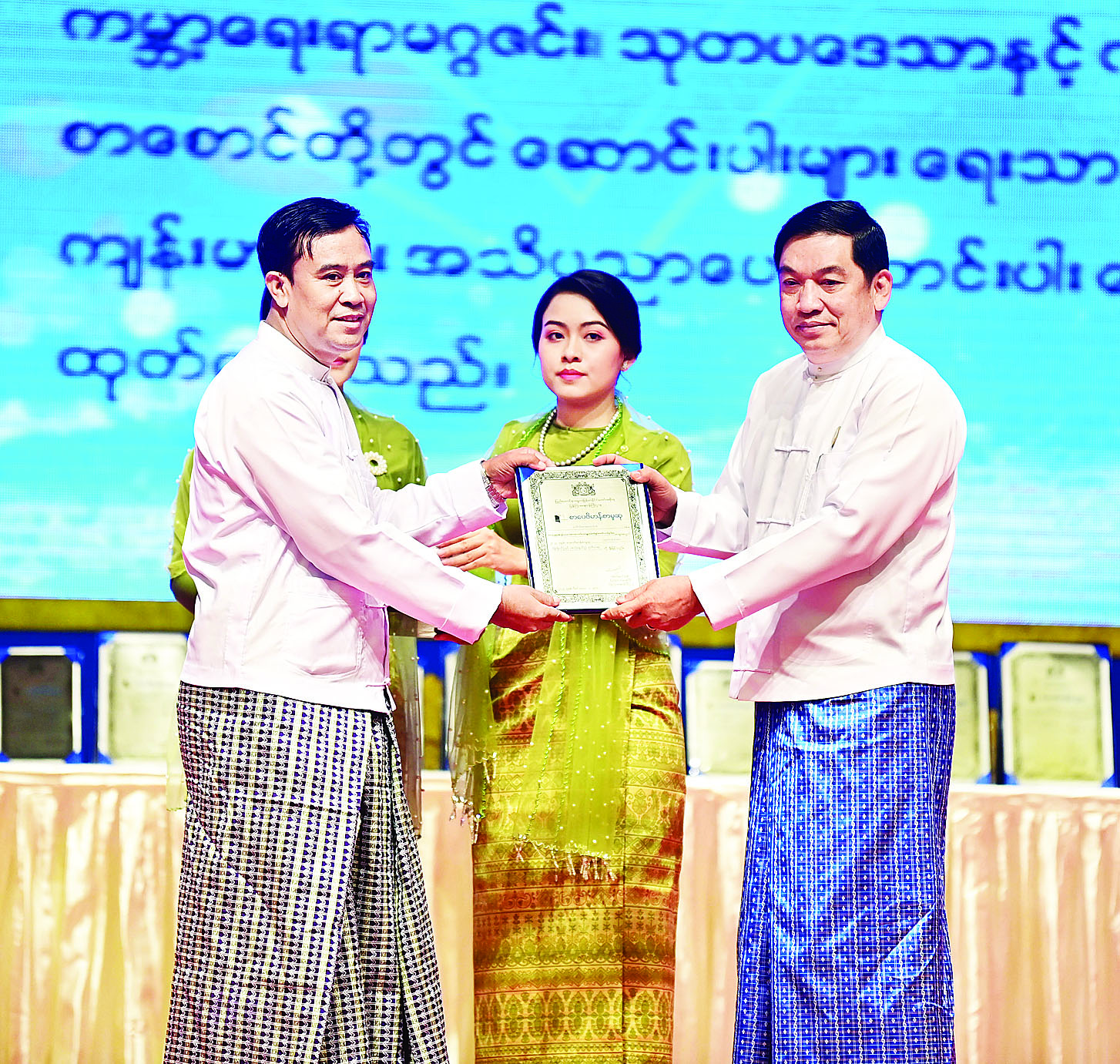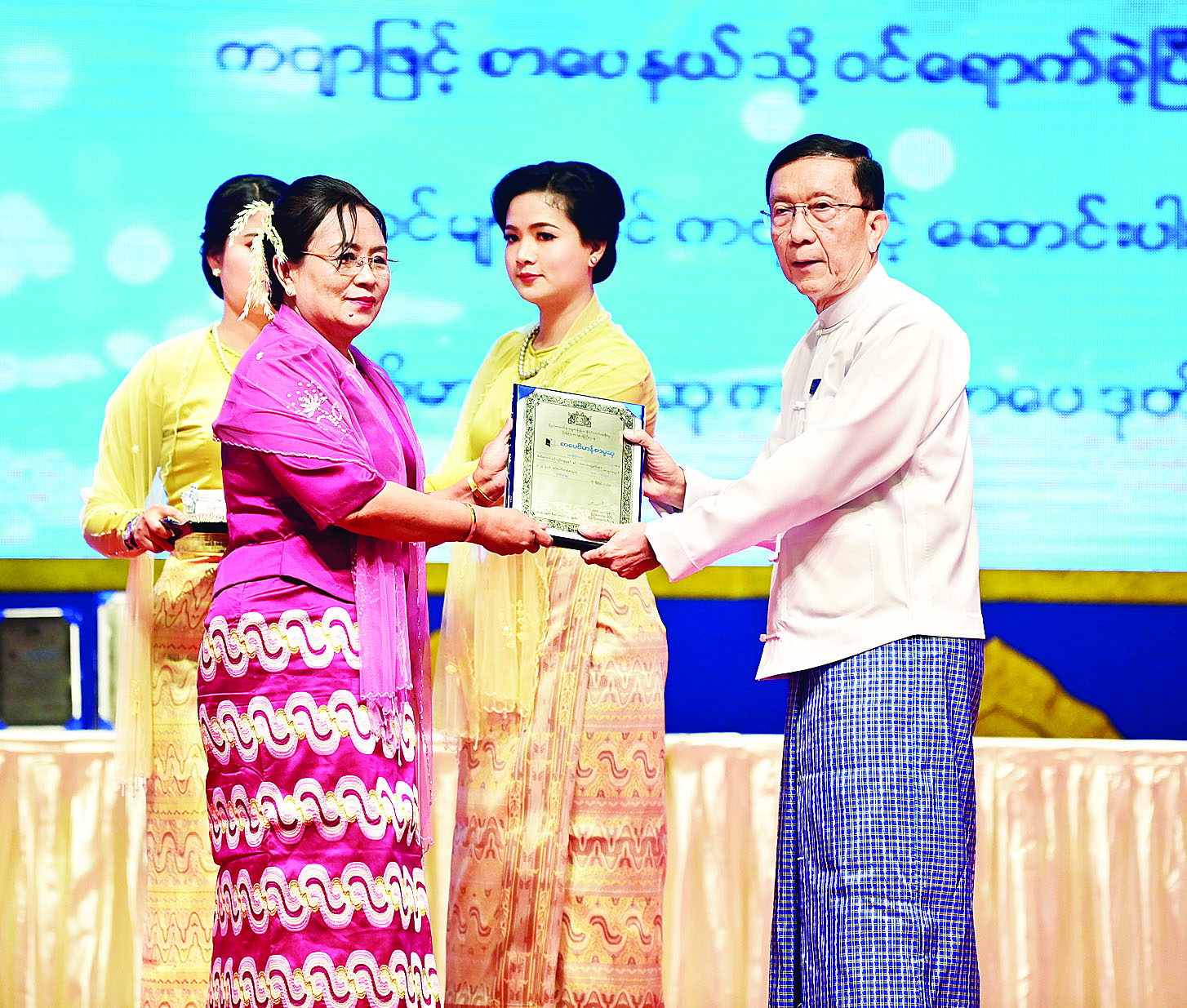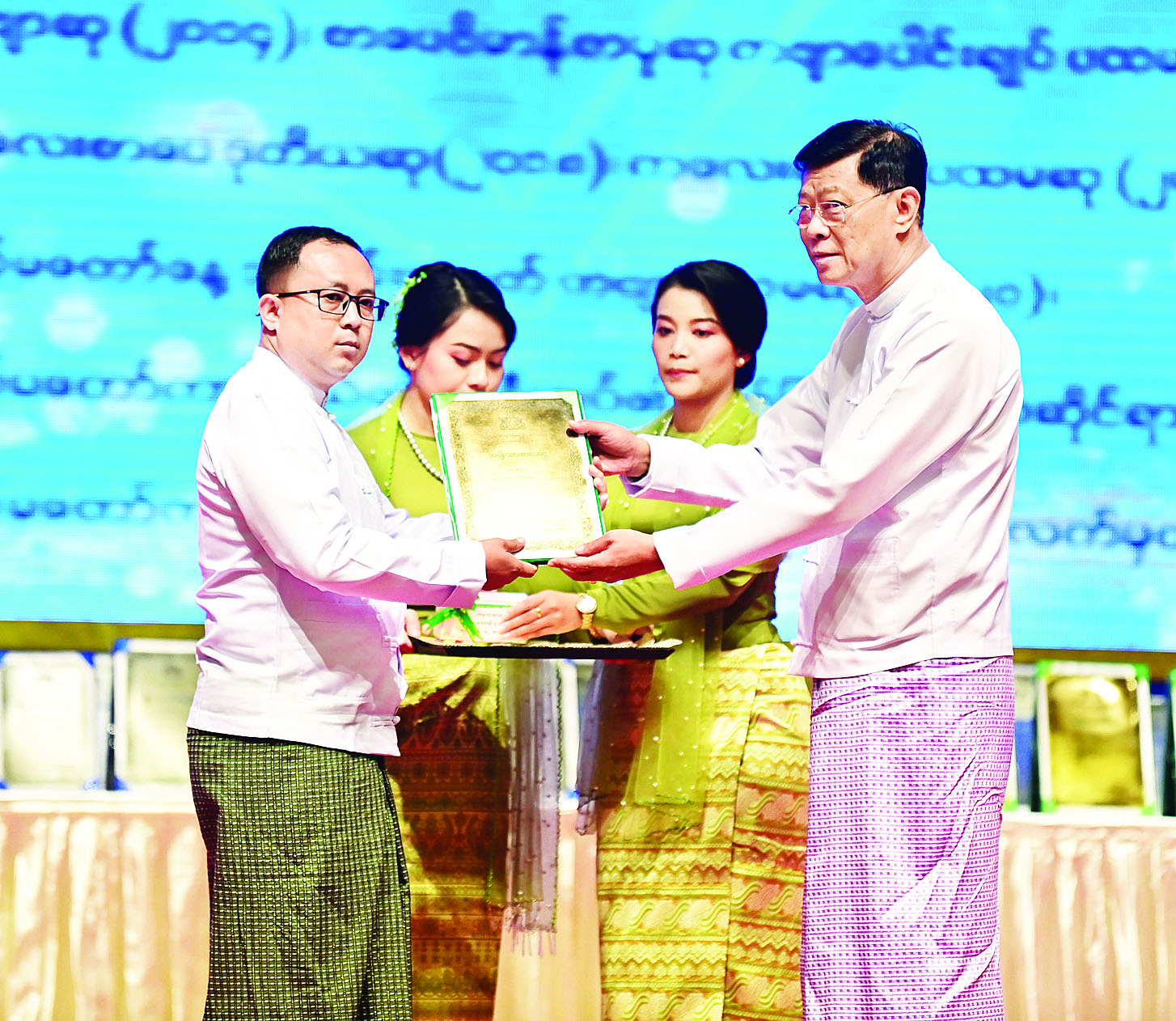 ထို့နောက် ကောင်စီတွဲဖက်အတွင်းရေးမှူး ဗိုလ်ချုပ်ကြီး ရဲဝင်းဦး၊ ကောင်စီဝင်များဖြစ်ကြသည့် ဗိုလ်ချုပ်ကြီး မြထွန်းဦး၊ ဗိုလ်ချုပ်ကြီး တင်အောင်စန်း၊ ဗိုလ်ချုပ်ကြီး မောင်မောင်အေး၊ ဒုတိယဗိုလ်ချုပ်ကြီးရာပြည့်၊ ဗိုလ်ချုပ်ကြီး ညိုစော၊ ပြည်ထောင်စုဝန်ကြီးများဖြစ်ကြသည့် ဦးဝင်းရှိန်နှင့် ဦးမောင်မောင်အုန်းတို့က အမျိုးသားစာပေဆုရရှိသူများနှင့် စာပေဗိမာန်စာမူဆုရရှိသူများကို ဆုများပေးအပ်ချီးမြှင့်ကြသည်။