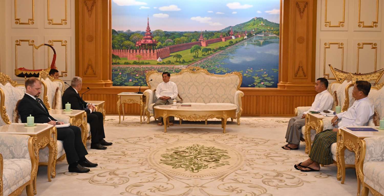 နိုင်ငံတော်စီမံအုပ်ချုပ်ရေးကောင်စီဥက္ကဋ္ဌ နိုင်ငံတော်ဝန်ကြီးချုပ် ဗိုလ်ချုပ်မှူးကြီးမင်းအောင်လှိုင် ဟနွိုင်းမြို့အခြေစိုက် မြန်မာနိုင်ငံဆိုင်ရာ ဘယ်လာရုစ်နိုင်ငံသံအမတ်ကြီး H.E. Mr. Uladzimir Baravikou အား ယနေ့နံနတ်ပိုင်းတွင် နေပြည်တော်ရှိ နိုင်ငံတော်စီမံအုပ်ချုပ်ရေးကောင်စီဥက္ကဋ္ဌရုံး၊ ဧည့်ခန်းမ၌ လက်ခံတွေ့ဆုံသည်။