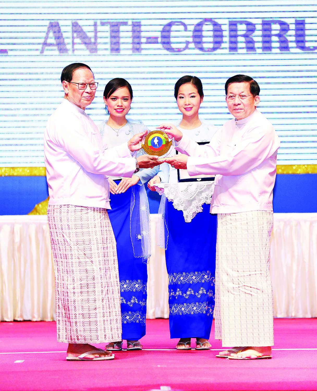 ယင်းနောက် နိုင်ငံတော်စီမံ အုပ်ချုပ်ရေးကောင်စီဥက္ကဋ္ဌ နိုင်ငံတော်ဝန်ကြီးချုပ်ထံ အဂတိလိုက်စားမှုတိုက်ဖျက်ရေးကော်မရှင်ဥက္ကဋ္ဌက အပြည်ပြည်ဆိုင်ရာ အဂတိလိုက်စားမှုတိုက်ဖျက်ရေးနေ့ အထိမ်းအမှတ်တံဆိပ်အား ဂါရဝပြုပေးအပ်သည်။