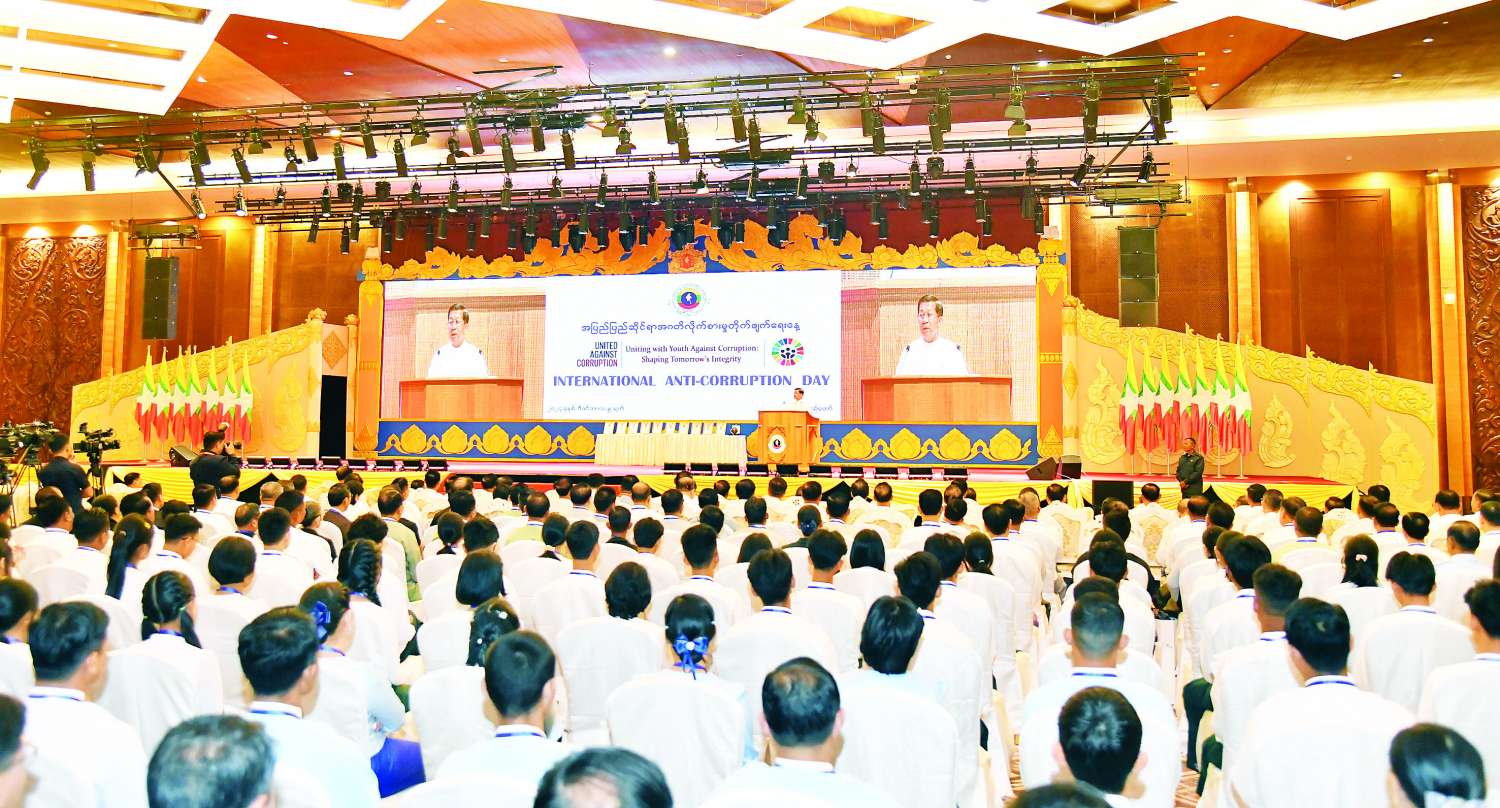 အပြည်ပြည်ဆိုင်ရာ အဂတိလိုက်စားမှုတိုက်ဖျက်ရေးနေ့အထိမ်းအမှတ်အခမ်းအနားကို ယနေ့နံနက်ပိုင်းတွင် နေပြည်တော်ရှိ မြန်မာအပြည်ပြည်ဆိုင်ရာ ကွန်ဗင်းရှင်းဗဟိုဌာန-၁ ၌ ကျင်းပပြုလုပ်ရာ နိုင်ငံတော်စီမံအုပ်ချုပ်ရေးကောင်စီဥက္ကဋ္ဌ နိုင်ငံတော်ဝန်ကြီးချုပ် ဗိုလ်ချုပ်မှူးကြီး မင်းအောင်လှိုင် တက်ရောက်အမှာစကားပြောကြားသည်။