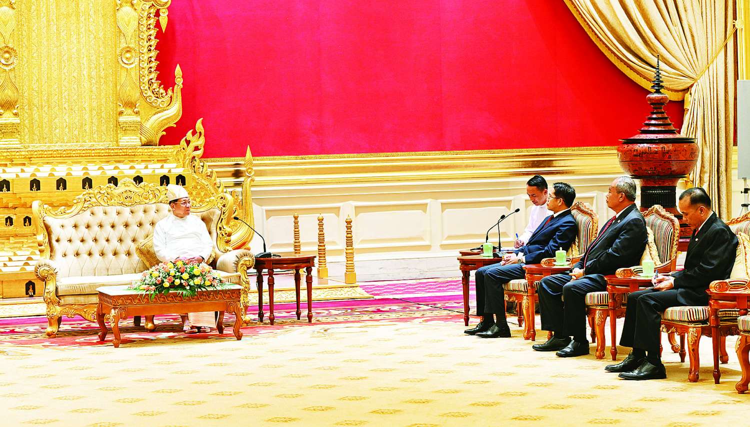 နိုင်ငံတော်စီမံအုပ်ချုပ်ရေးကောင်စီဥက္ကဋ္ဌ နိုင်ငံတော်ဝန်ကြီးချုပ် ဗိုလ်ချုပ်မှူးကြီး မင်းအောင်လှိုင်ထံ မြန်မာနိုင်ငံဆိုင်ရာ လာအိုပြည်သူ့ဒီမိုကရက်တစ်သမ္မတနိုင်ငံ သံအမတ်ကြီးအဖြစ်ခန့်အပ်ရန် သဘောတူညီပြီးဖြစ်သော သံအမတ်ကြီး H . E. Mr. Bounphieng CHANTHAVONG သည် ယနေ့နံနက် ၁၀ နာရီခွဲတွင် နေပြည်တော်ရှိ နိုင်ငံတော်စီမံအုပ်ချုပ်ရေးကောင်စီဥက္ကဋ္ဌရုံး သံတမန်ဆောင်ဧည့်ခန်းမ၌ ၎င်း၏သံအမတ်ခန့်အပ်လွှာကို ပေးအပ်သည်။