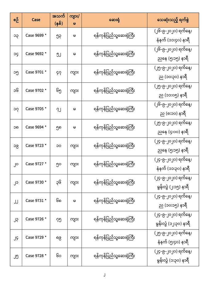 ၃။ ဓာတ်ခွဲအတည်ပြု လူနာဟောင်း (old confirmed case) များအနက် စုစုပေါင်း (၂,၈၆၂) ဦး အား ဆေးရုံမှဆင်းခွင့်ပြုခဲ့ပြီးဖြစ်ပါသည်။