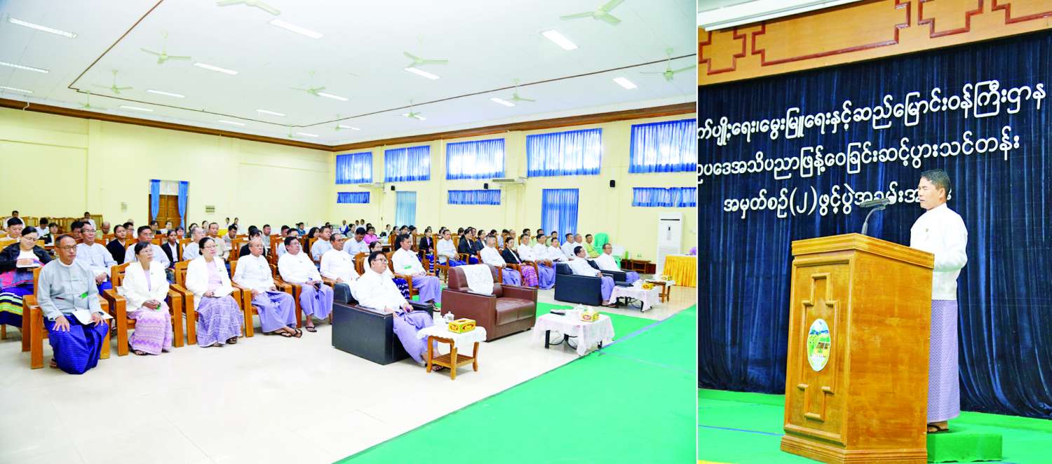 ဦးစွာ ပြည်ထောင်စုဝန်ကြီးက ယနေ့သင်တန်းတွင် ပညာရပ်ကျွမ်းသူများက ကဏ္ဍစုံသင်ကြားသလို မိမိကိုယ်တိုင်ကလည်း နိုးကြားတက်ကြွစွာ လေ့လာသင်ယူကြရန်နှင့် အချင်းချင်းအသိပညာမျှဝေရန် လိုအပ်ကြောင်း၊ ပညာရပ်ပိုင်းဆိုင်ရာကျွမ်းကျင်သူများ၊ ဌာနဆိုင်ရာ လုပ်ငန်းကျွမ်းကျင်သူအချင်းချင်း ဆွေးနွေးဖလှယ်ခြင်းဖြင့် တစ်ဦးနှင့်တစ်ဦး အပြန်အလှန်လေးစားမှု ရှိစေကြောင်း၊ ယခုသင်တန်းတက်ရောက်သူအားလုံးက ဥပဒေဆိုင်ရာပညာရပ်များကို နားလည်သဘောပေါက်ပြီး မိမိဌာနတွင်လည်း ဥပဒေ၏အရေးပါမှုကို သိရှိစေနိုင်ရန် ထပ်ဆင့်မျှဝေခြင်းများ ဆောင်ရွက်သွားကြရန် လိုအပ်ကြောင်း ပြောကြားသည်။