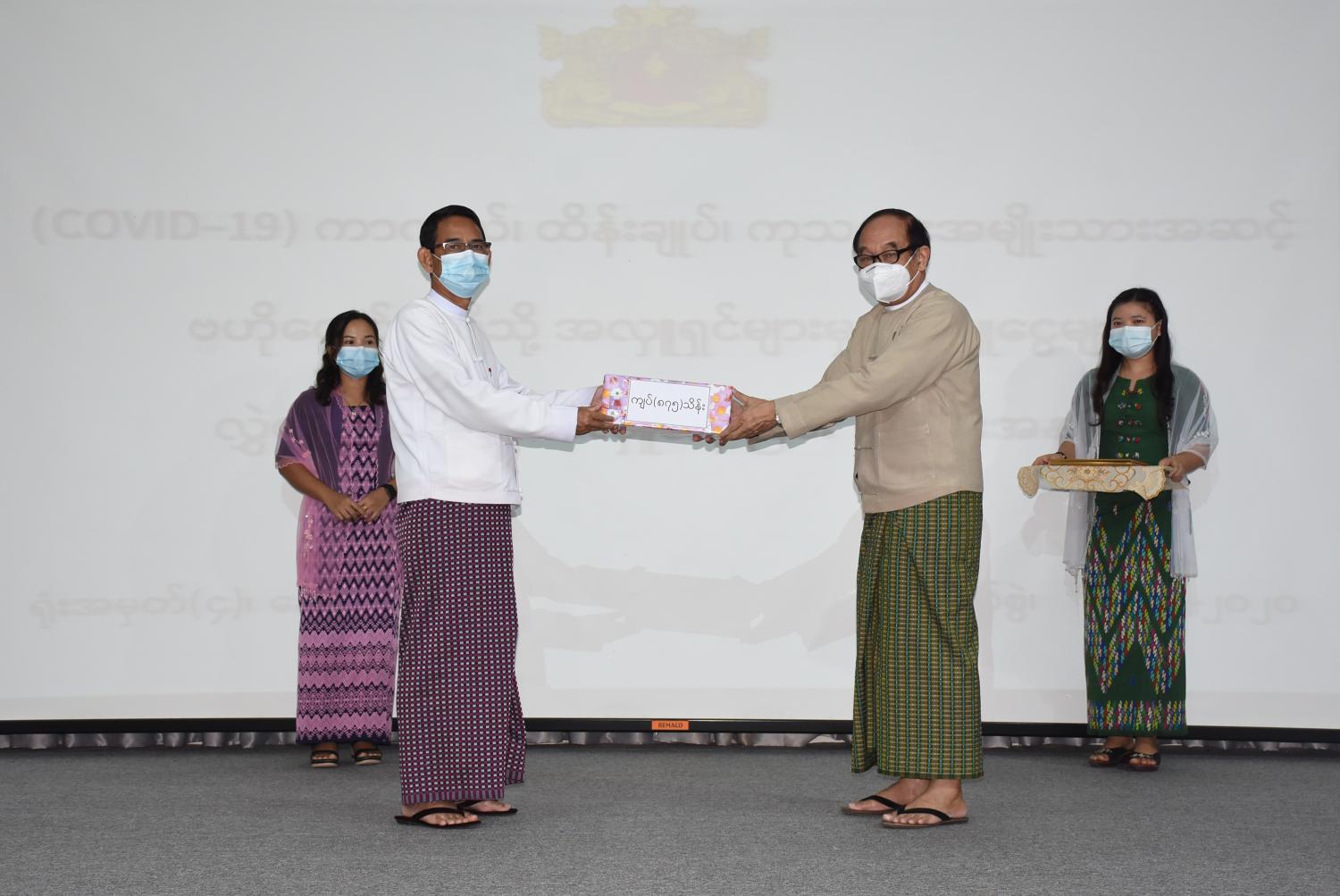 Corona virus Disease 2019 (COVID-19) ကာကွယ်၊ ထိန်းချုပ်၊ ကုသရေး လုပ်ငန်းများအတွက် အလှူငွေများ ပေးအပ်လှူဒါန်း ပွဲကို ယနေ့မွန်းလွဲပိုင်းတွင် ကျန်းမာရေးနှင့် အားကစားဝန်ကြီးဌာန၌ ကျင်းပသည်။