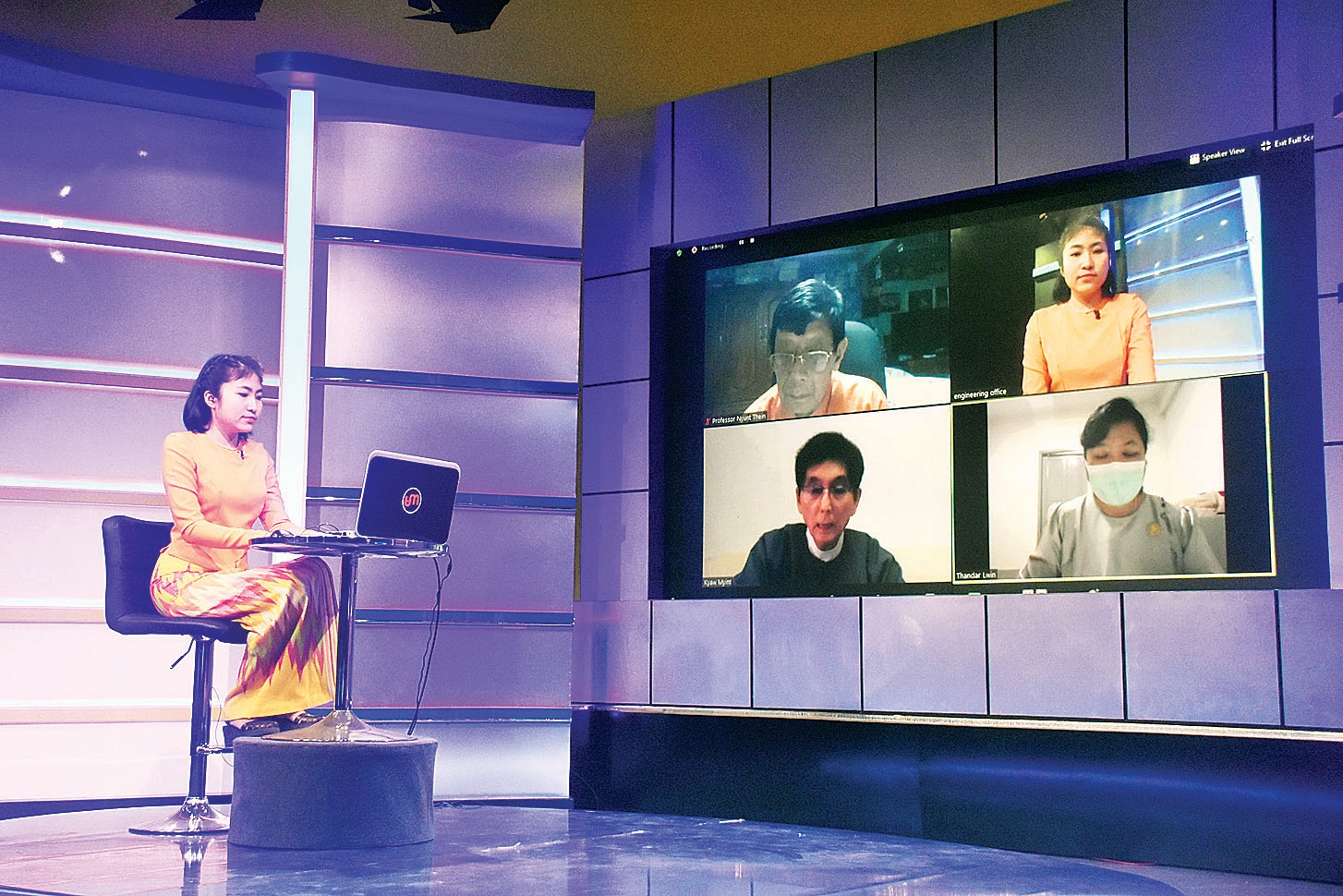 ခြောက်ပေအကွာနေပါလို့ ပြောကြားနေရခြင်းဖြစ်ပါတယ်။ ဒီကနေ့ကျွန်မတို့ ဆွေးနွေးနေတဲ့ ဆရာကြီးနှစ်ပါးက Mask မတပ်ထားပါဘူး။ ကျွန်မက Mask တပ်ထားပါတယ်။ ကျွန်မအနားမှာ ခြောက်ပေအကွာမှာ တခြားသူတွေ ရှိနေတဲ့အတွက် Mask ကို တပ်ထားတာ ဖြစ်ပါတယ်။ ဒီလိုပဲ ခြောက်ပေအကွာ ဆက်ပြီးနေပါ။ မိမိကိုယ်ကနေ ကာကွယ်ဖို့အတွက် ဒီ Mask ကို တပ်ထားမယ်ဆိုရင် ကျွန်မတို့ဒီရောဂါကို ကာကွယ်နိုင်မှာ ဖြစ်ပါတယ်။ ဒါကြောင့်မို့ ဒုတိယ လှိုင်းမှာ ခက်ခက်ခဲခဲ ထိန်းသိမ်းနေ ရတယ်ဆိုပေမယ့် ကျန်းမာရေးနှင့် အားကစားဝန်ကြီးဌာန ရဲ့လမ်းညွှန်ချက်များကို အပြည့်အဝလိုက်နာဖို့ လိုအပ်ပါတယ်ဆိုတာ ကျွန်မအနေနဲ့ ပြန်လည် ဖြေကြားပါရစေရှင့်။
