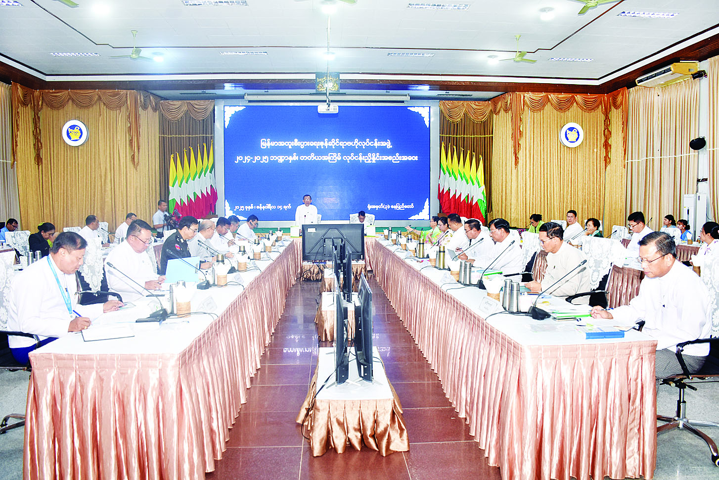 မြန်မာအထူးစီးပွားရေးဇုန်ဆိုင်ရာ ဗဟိုလုပ်ငန်းအဖွဲ့၏ ၂၀၂၄ - ၂၀၂၅ ဘဏ္ဍာနှစ် တတိယအကြိမ် အစည်းအဝေးကို ယနေ့မွန်းလွဲ ၁ နာရီတွင် နေပြည်တော်ရှိ စီးပွားရေးနှင့်ကူးသန်းရောင်းဝယ်ရေးဝန်ကြီးဌာန ညီလာခံခန်းမ၌ ကျင်းပသည်။